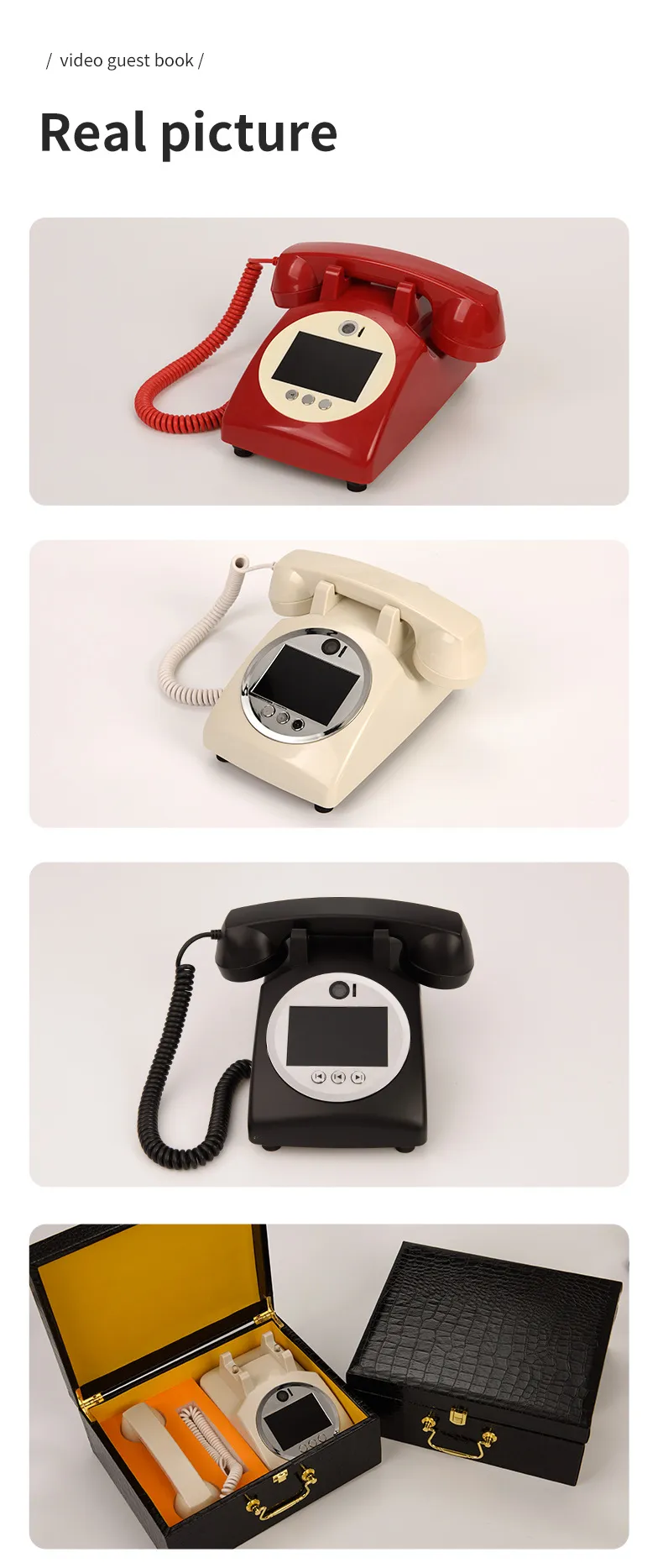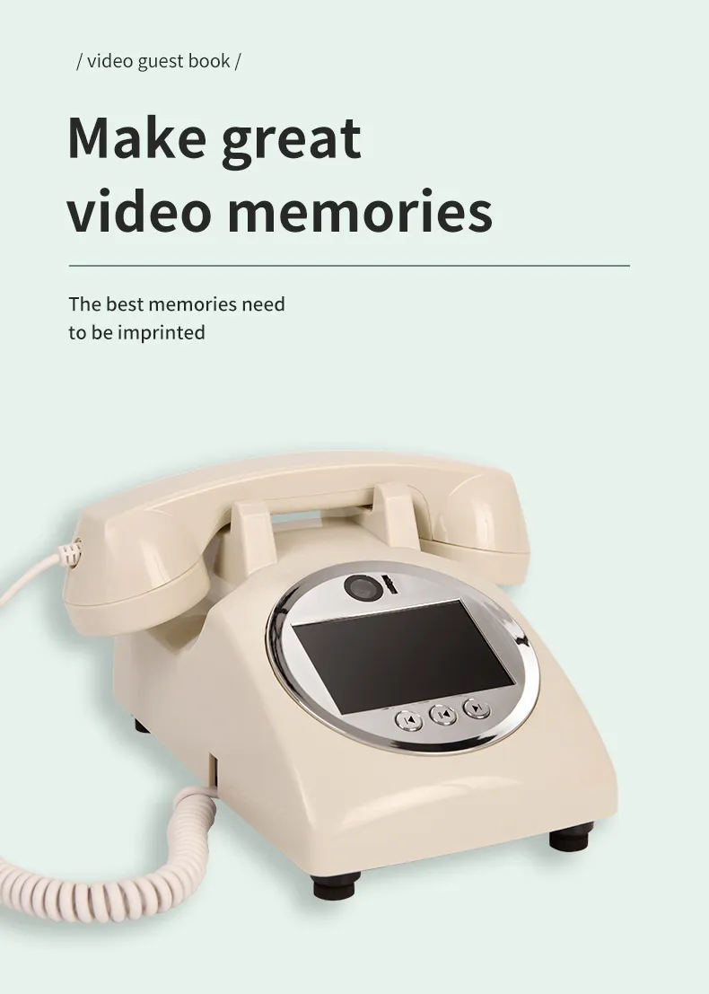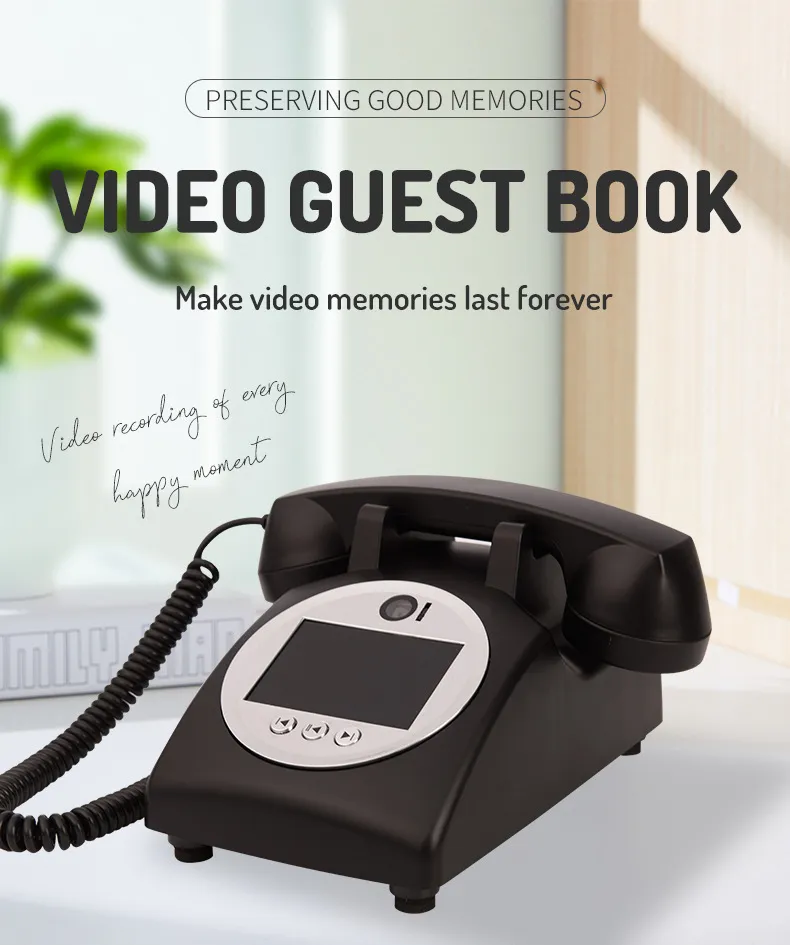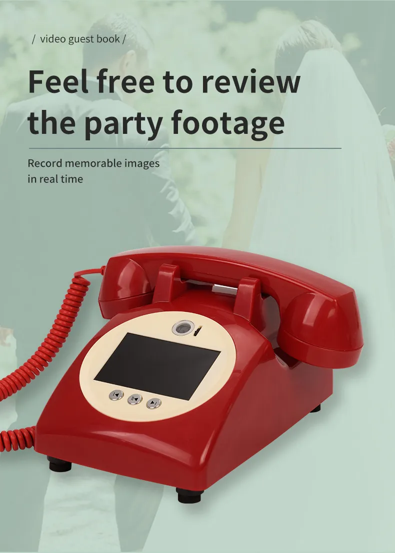 The European-Style Retro Wedding Video Visitors' Book is a truly unique and innovative way to capture the love, joy, and blessings of your guests on your special day. Combining a vintage telephone design with modern technology, this device offers a timeless keepsake that’s both practical and meaningful. With high-quality video and audio recordings, it becomes a treasured memory to revisit whenever you want to relive the emotions of your celebration. Whether it's a wedding, birthday party, or any other special event, this video blessing message decoration telephone is the perfect addition to your event's decor and a wonderful way to preserve the memories of those who joined you in celebrating.