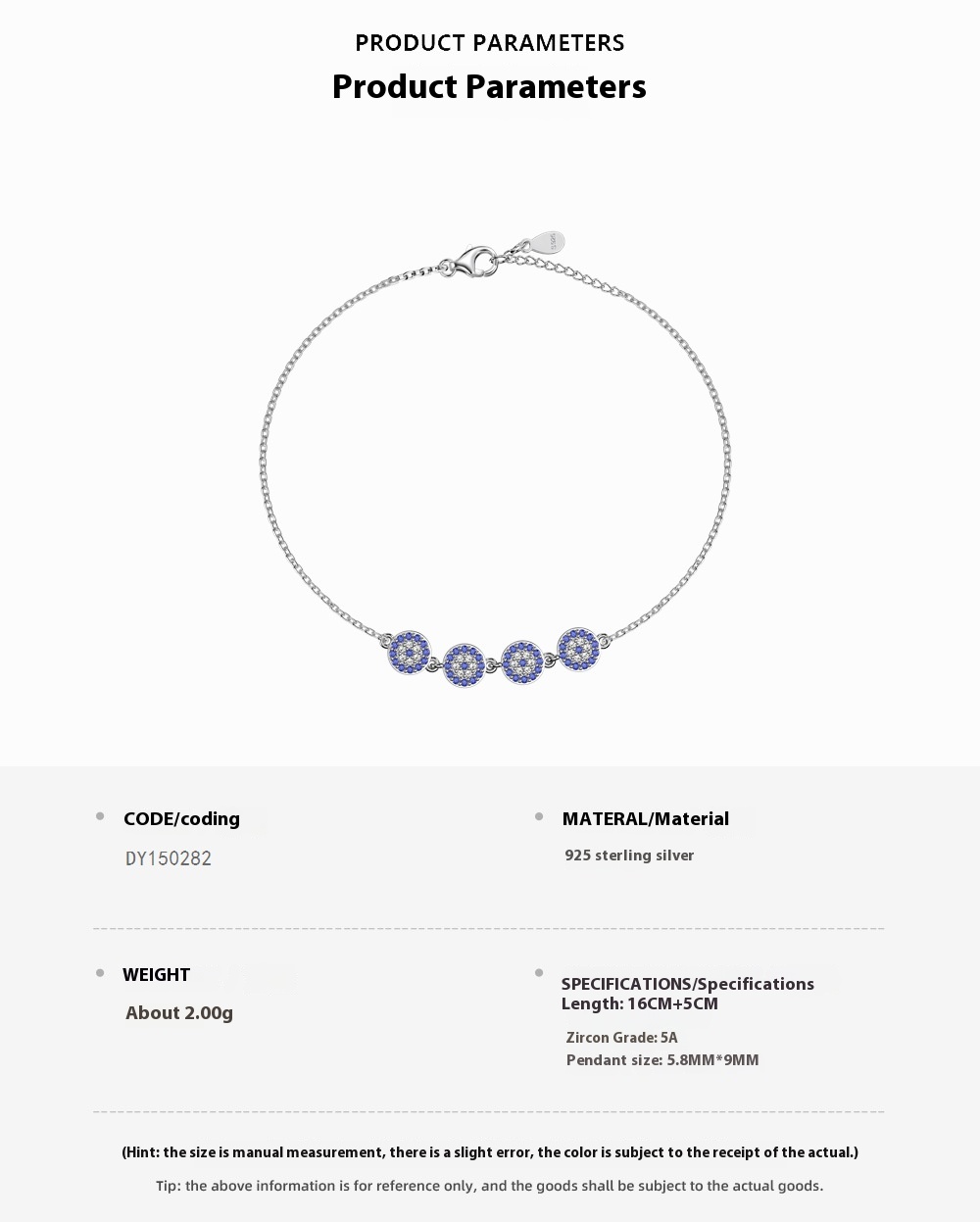 shine. It features four exquisitely designed evil eye charms, each embedded with high-quality blue cubic zirconia stones that sparkle with