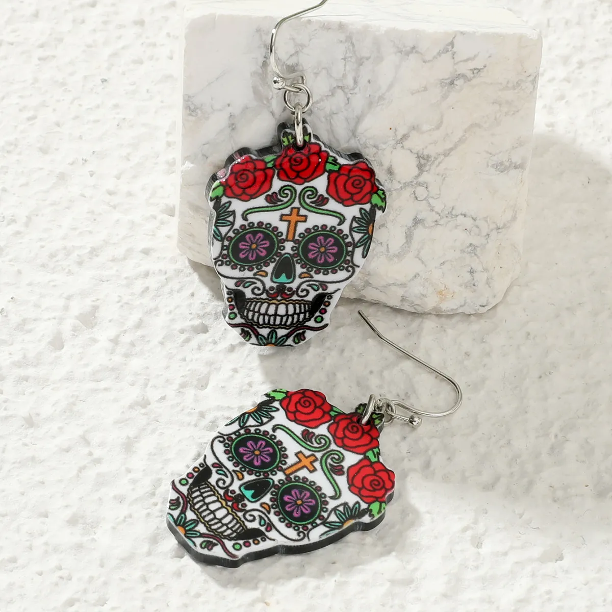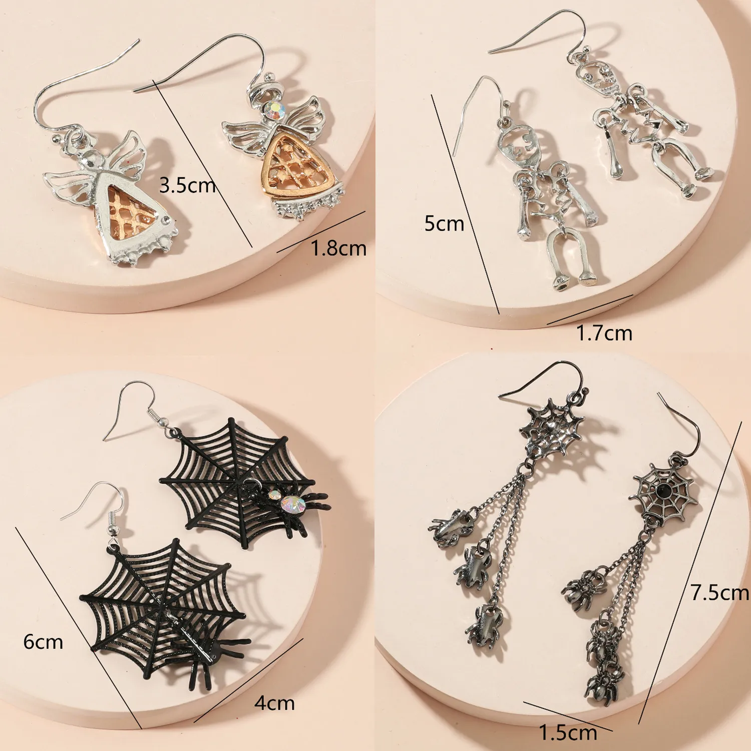 Color: 01 skull earrings, 02 white ghost earrings, 03 spider earrings, 04 red prong earrings, 05 pumpkin pendant earrings, 06 black leather