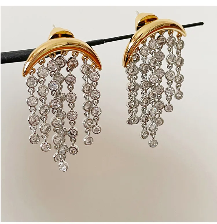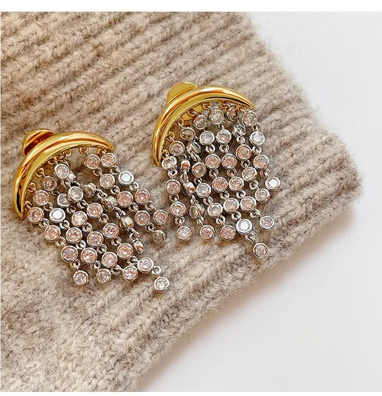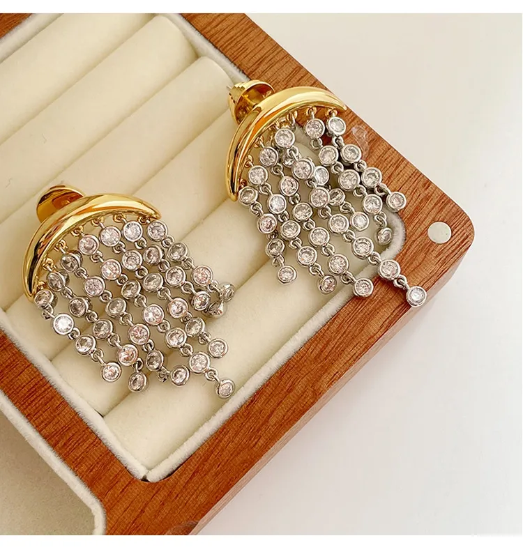Exaggerated Zircon Ins Tassel Earrings Niche Design