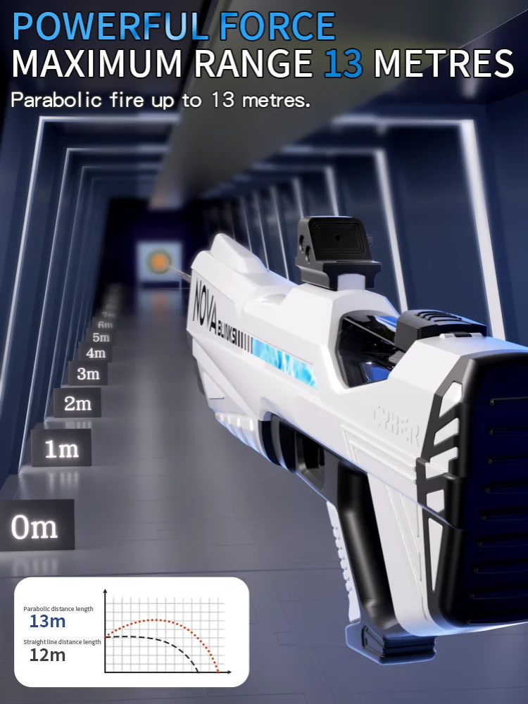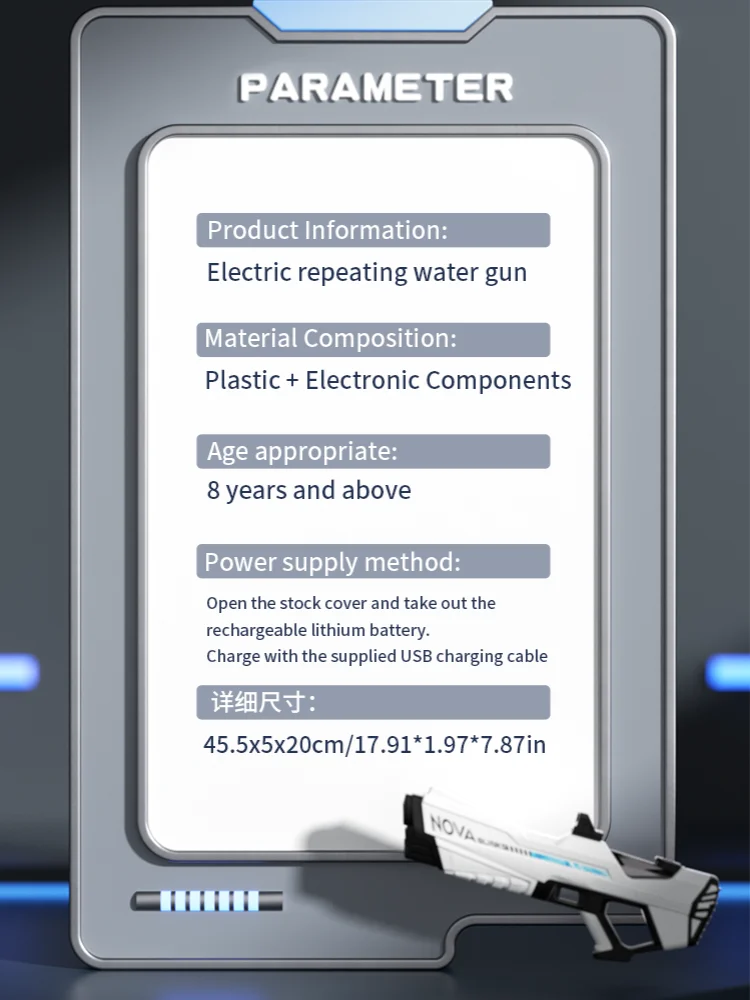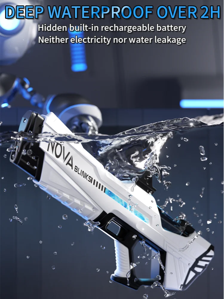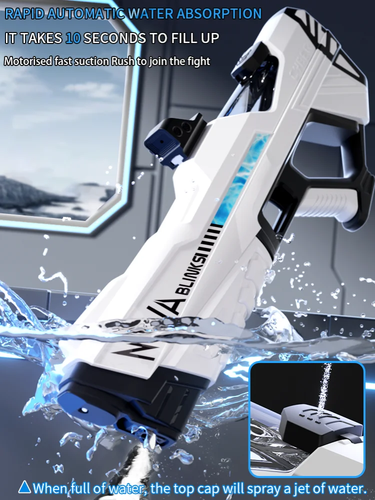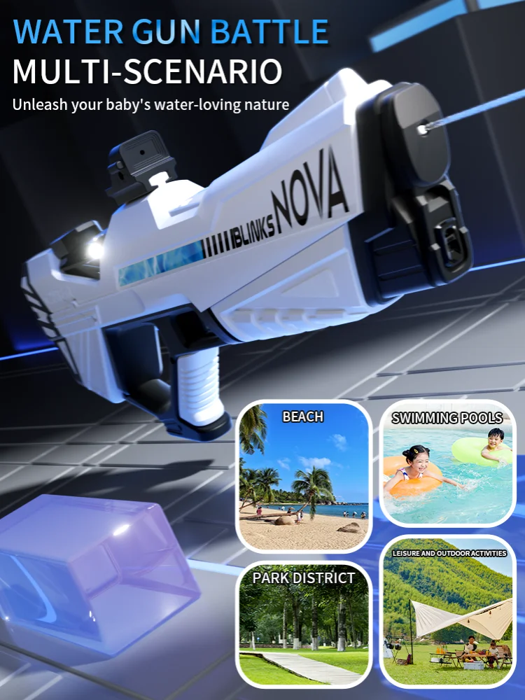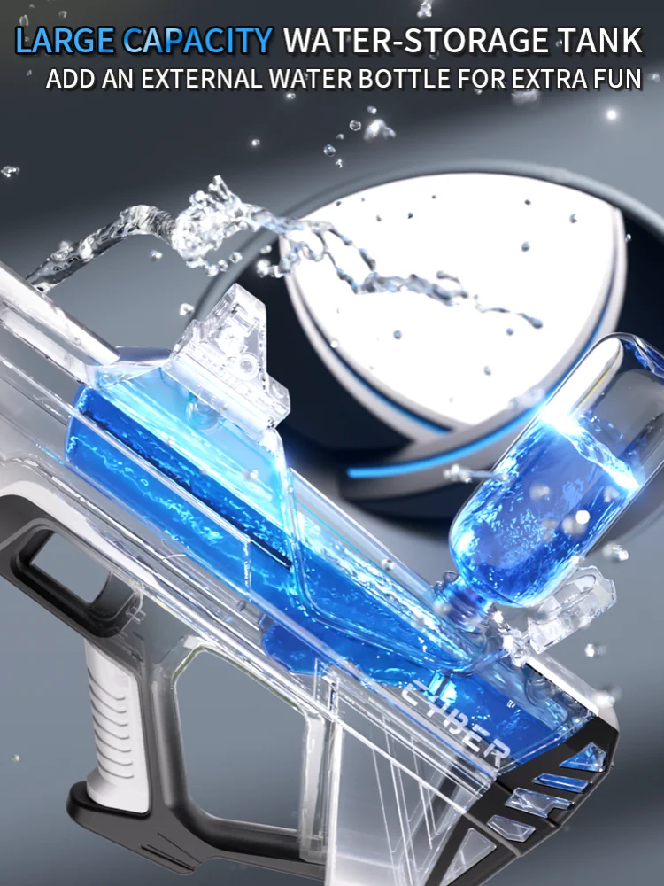 Features: **Unleash the Fun with High-Pressure Power** Immerse yourself in the excitement of summer with the Electric Water Gun Toys, a must-have for every child's collection of beach toys. This high-pressure, strong automatic water gun is not just a toy; it's a summer adventure waiting to happen. The ergonomic grip design ensures a comfortable and secure hold, while the cool LED light feature adds an extra layer of fun to your water battles. Whether you're at the beach, in the backyard, or at a pool party, this electric water gun is the ultimate companion for hours of splashing fun. **Built for Durability and Convenience** Crafted from robust ABS plastic, this electric water gun is built to withstand the rigors of playtime. The rechargeable battery and included USB charging cable make it easy to keep the fun going without interruption. The automatic water spray feature ensures a steady stream of water, making it perfect for target practice or simply cooling off on a hot day. The lightweight design and easy-to-use controls make it accessible for children of all ages, making it a perfect children's toy gift. **A Gift That Keeps on Giving** Looking for a gift that's both practical and exciting? The Electric Water Gun Toys are the perfect choice. Not only do they provide endless hours of entertainment, but they also encourage outdoor play and social interaction. This summer toy is not just a water gun; it's a gateway to memories that will last a lifetime. With its high-pressure, strong automatic water spray, it's sure to be a hit at any beach or pool party, making it a thoughtful and enjoyable children's toy gift.
