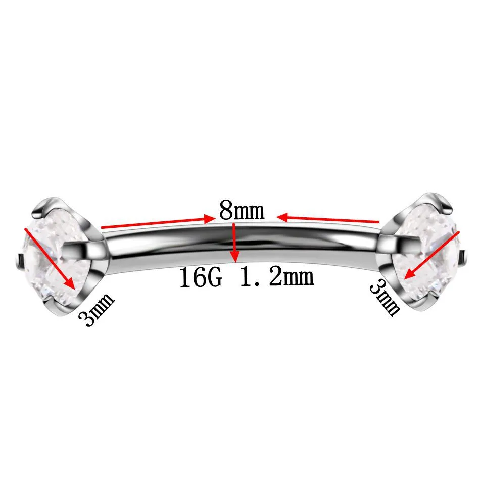 Dimensions: Rod thickness 1.2mm+Rod length 6mm/8mm+Zircon 3mm