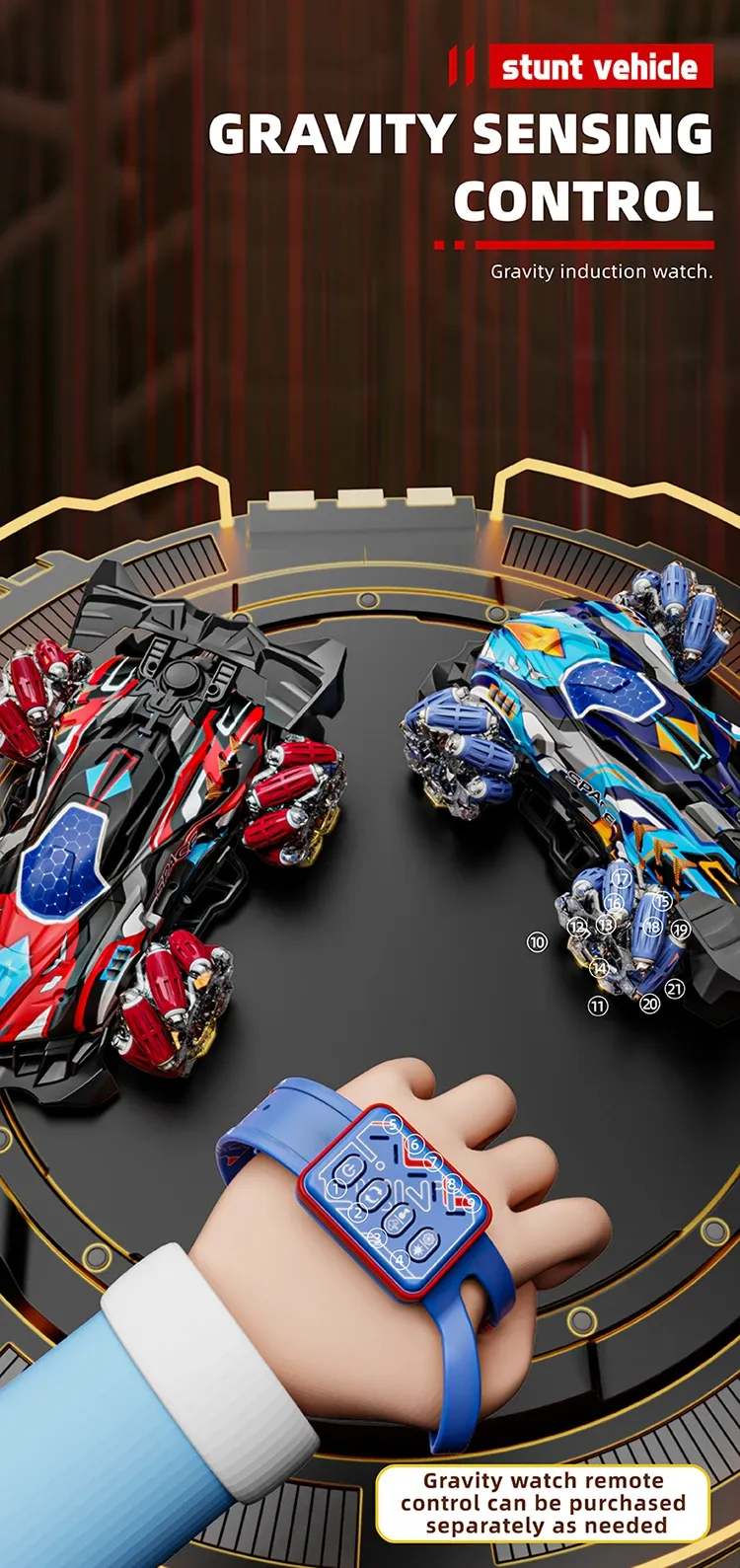 1. This toy is divided into dual control versions and single control versions. Single control refers to the product only being equipped with a handle remote control, while dual control refers to the product being equipped with both a handle remote control and a watch remote control;
