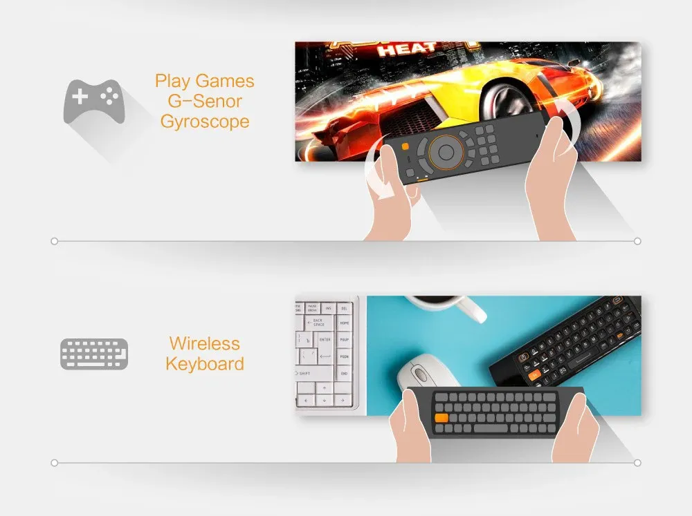 continue to use air mouse functions, such as mouse mode, key mode, game mode, keyboard.