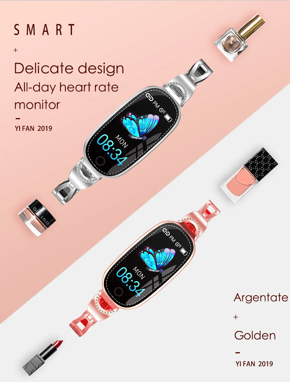 The F18 Fashion Smart Women Metal Strap Bracelet features a touchscreen interface, allowing you to navigate through apps and settings with ease. With just a simple touch, you can check your health stats, view notifications, or change settings. The intuitive interface ensures that using the bracelet is straightforward and convenient.
