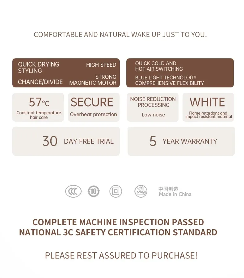 Fast drying: This hair dryer is designed specifically for fast drying, saving you time and allowing you to go out faster.