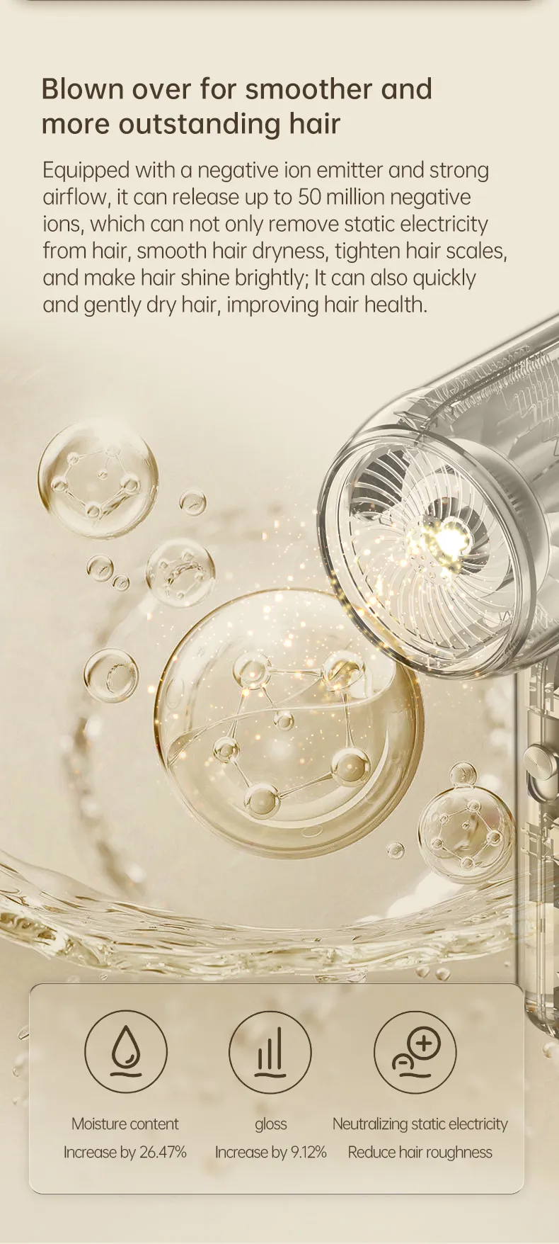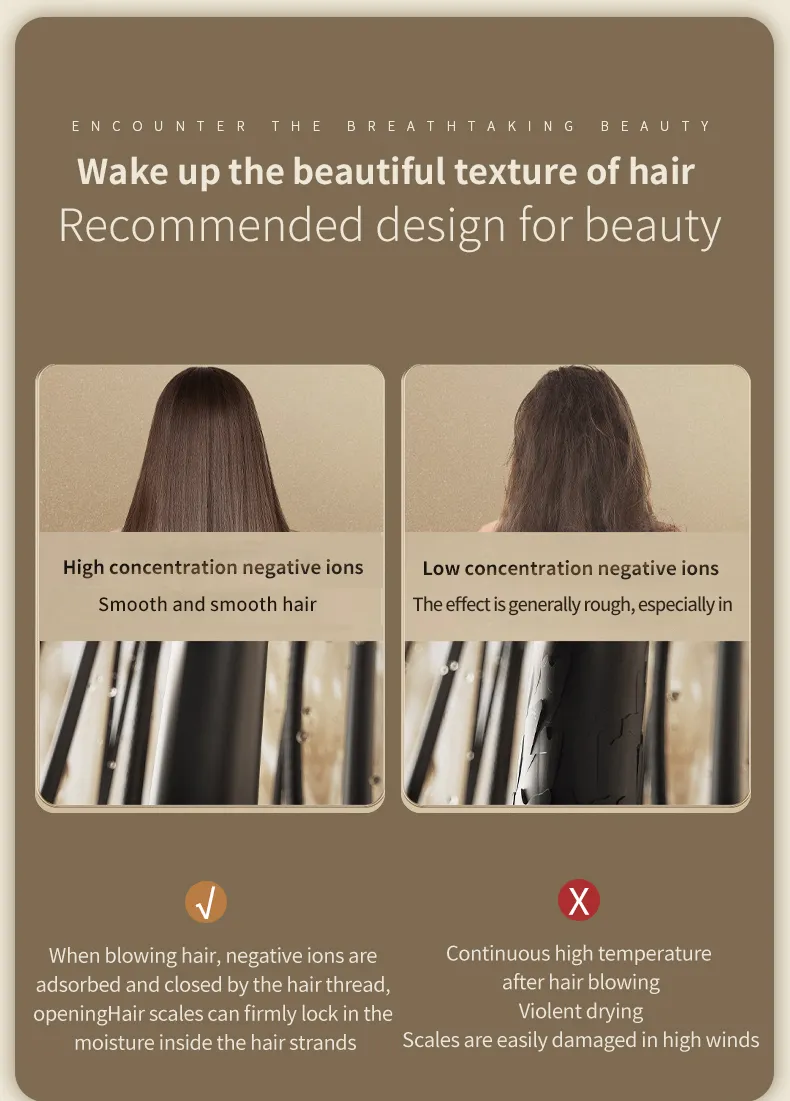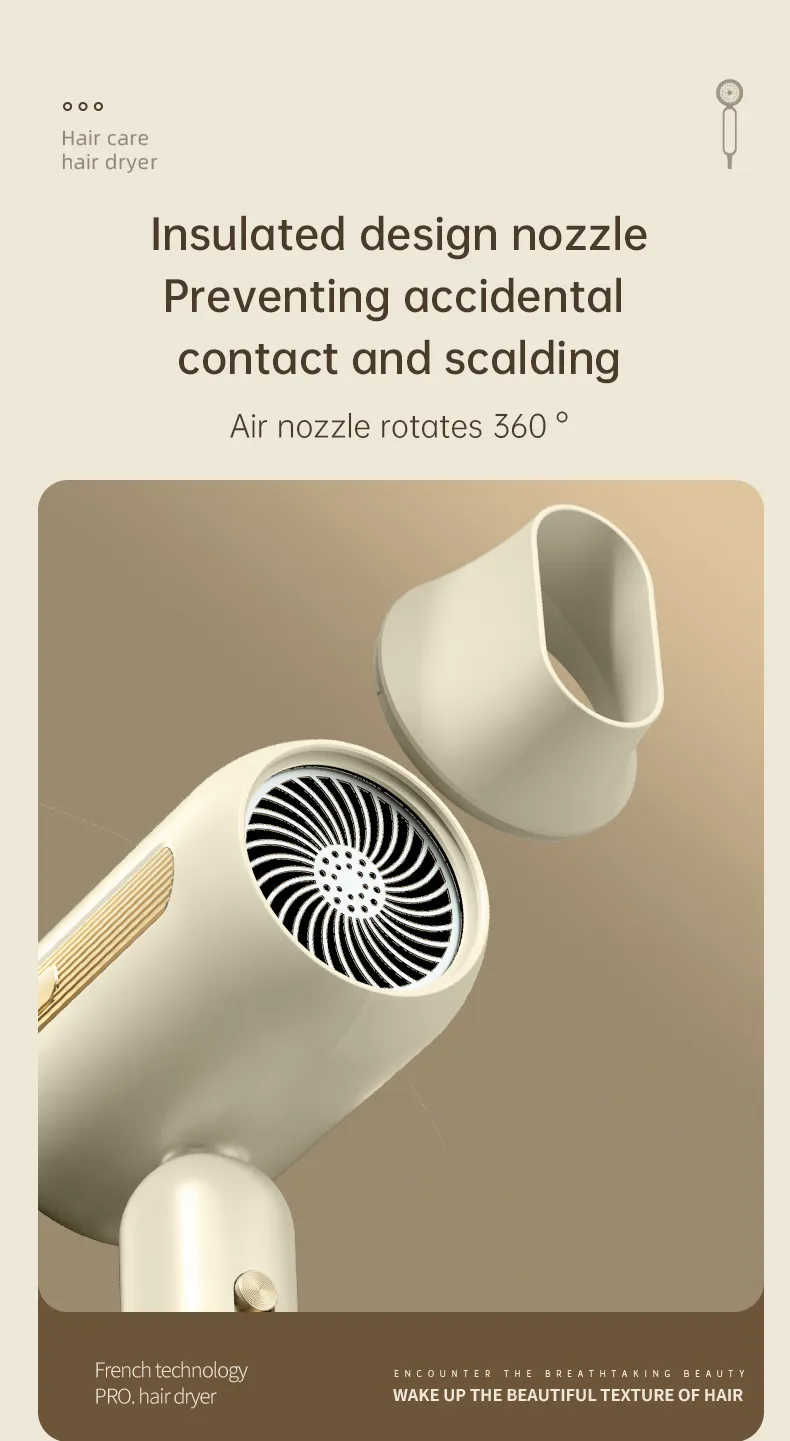 High speed electric turbine airflow: Experience the power of high-speed electric turbine airflow, aimed at quickly and efficiently drying hair.