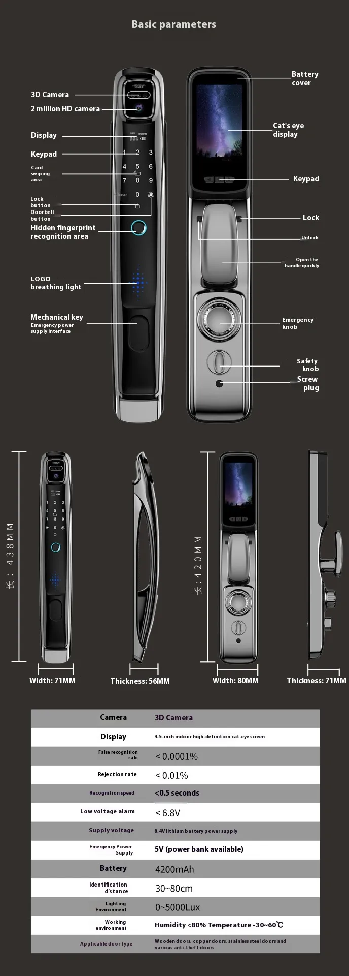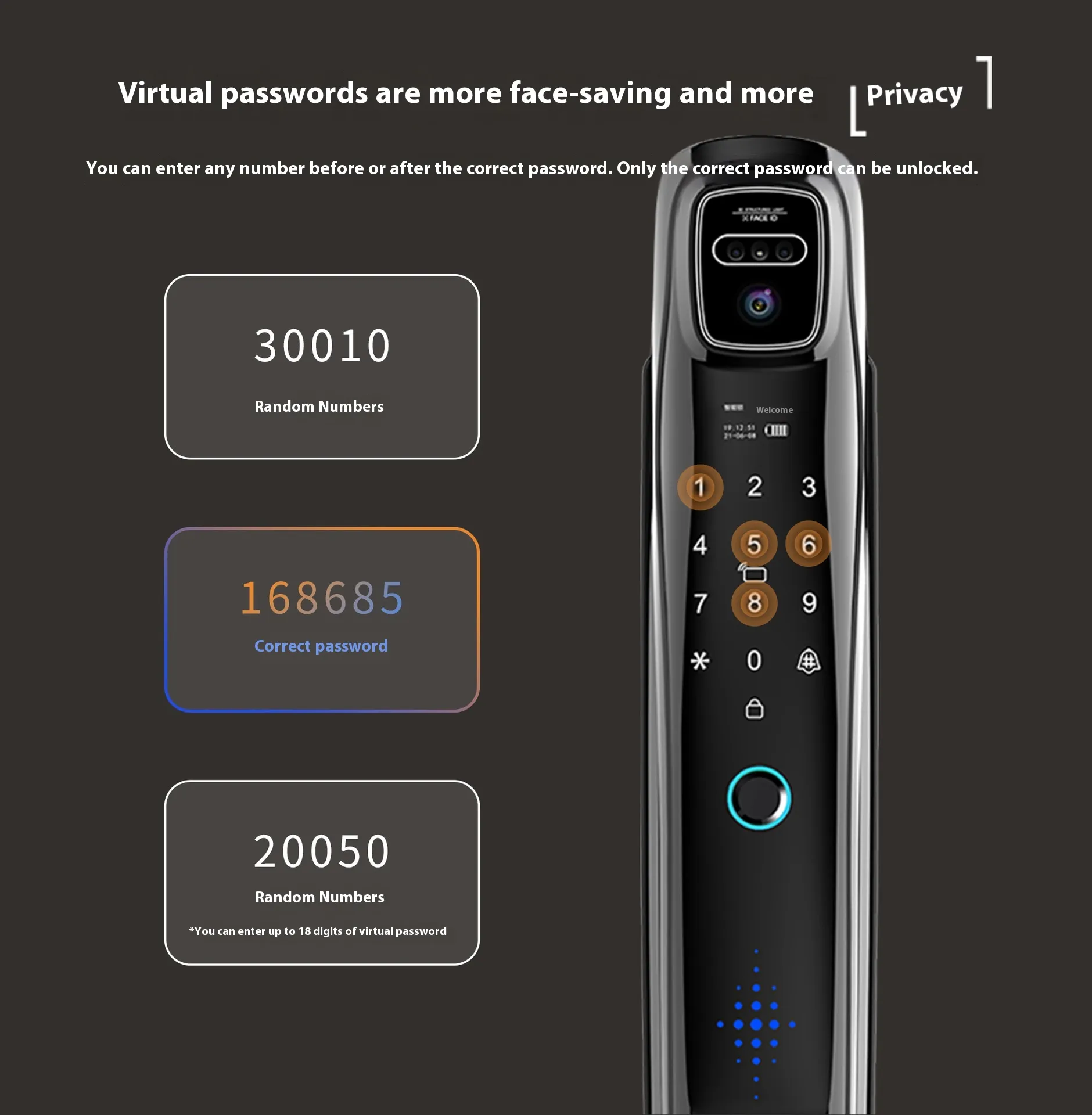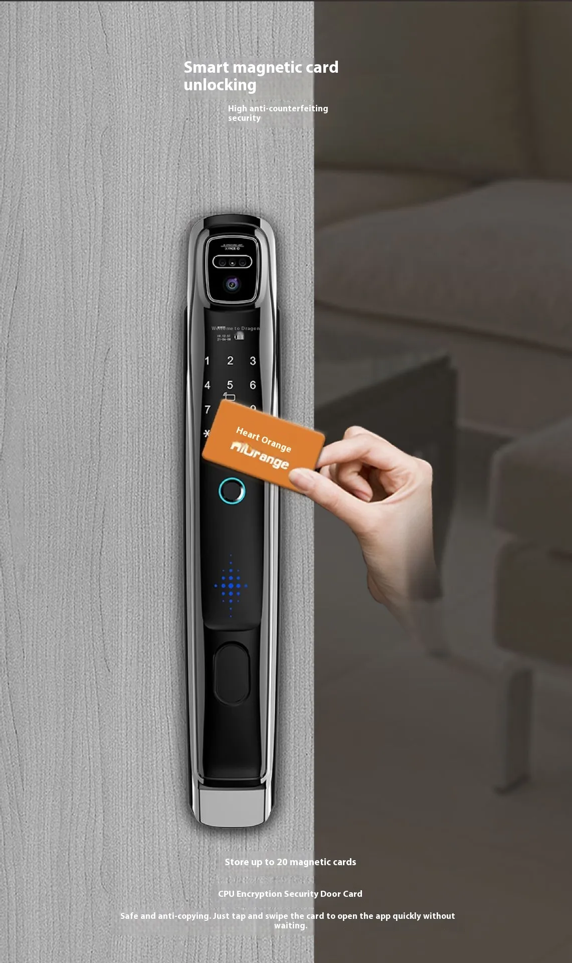 The lock uses sophisticated facial recognition technology to grant access, ensuring that only authorized individuals can enter your property. With its fast and accurate scanning capabilities, the system quickly recognizes registered faces, providing an efficient, touch-free way to unlock doors. This biometric system adds a level of convenience and security that traditional keys or keycards cannot match.