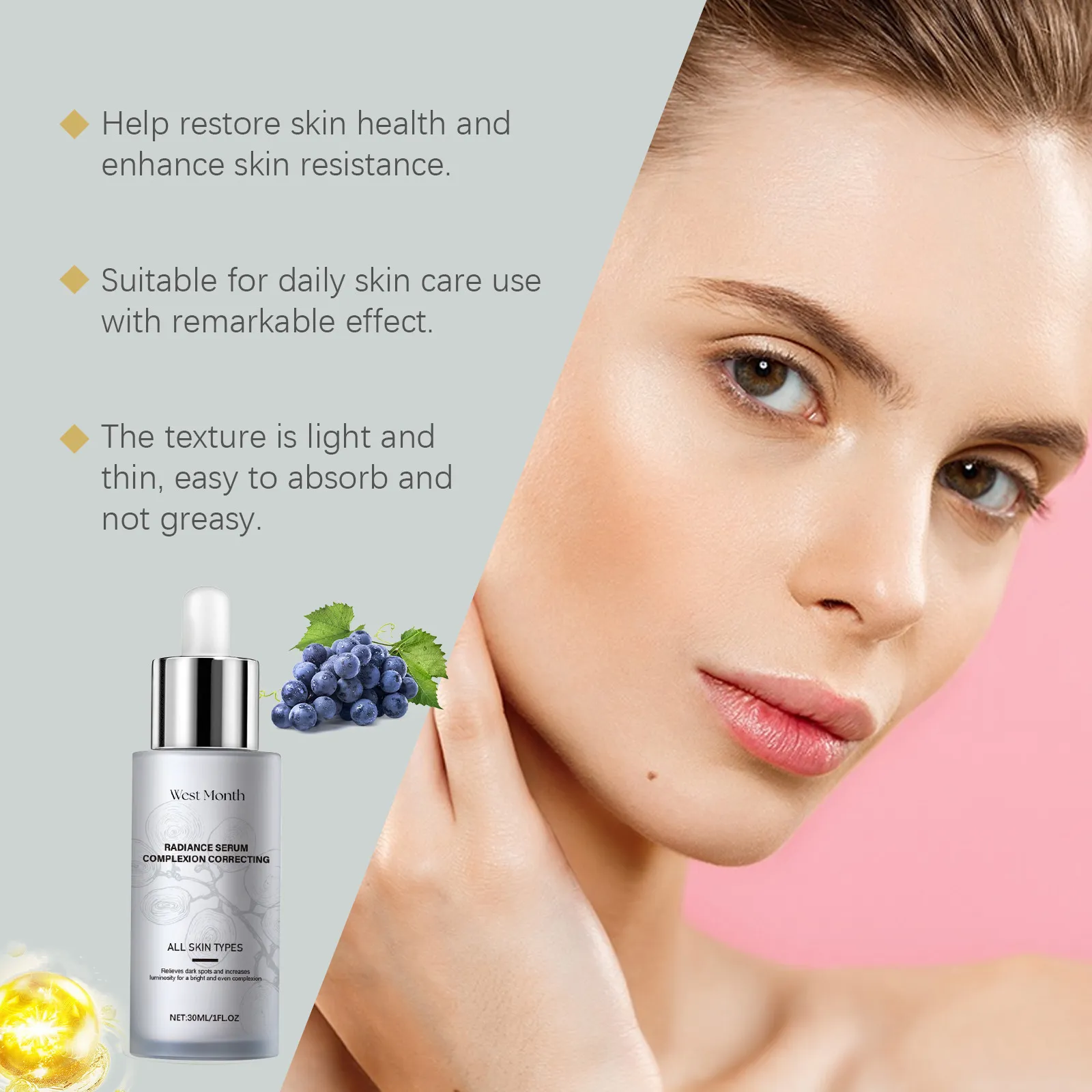 Ingredients: Water, nicotinamide, olive fruit extract, grape fruit extract, plant Squalane