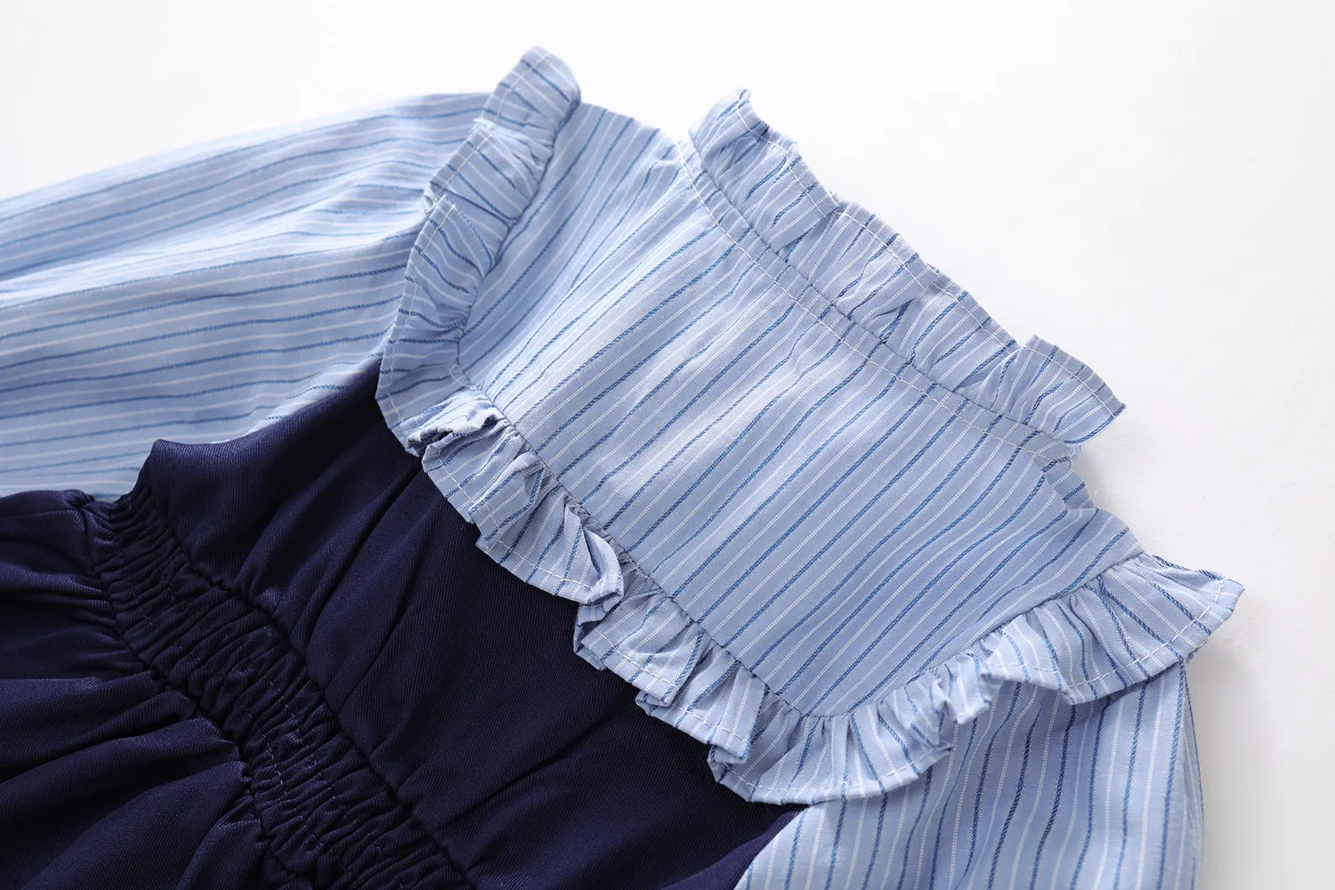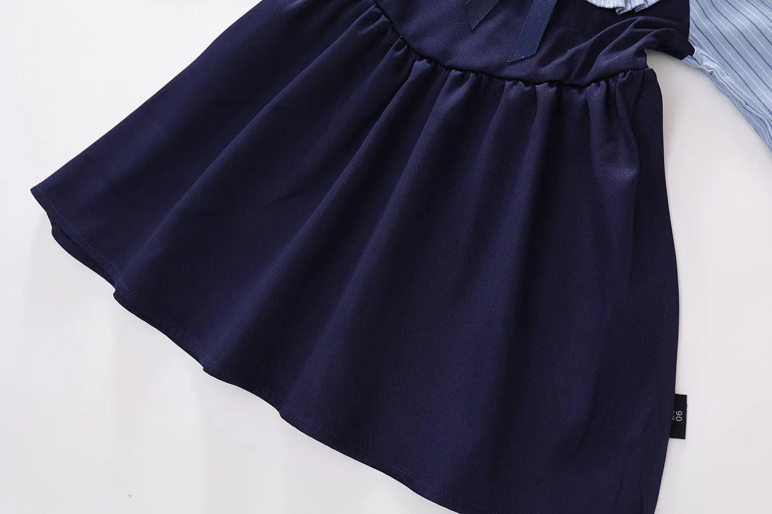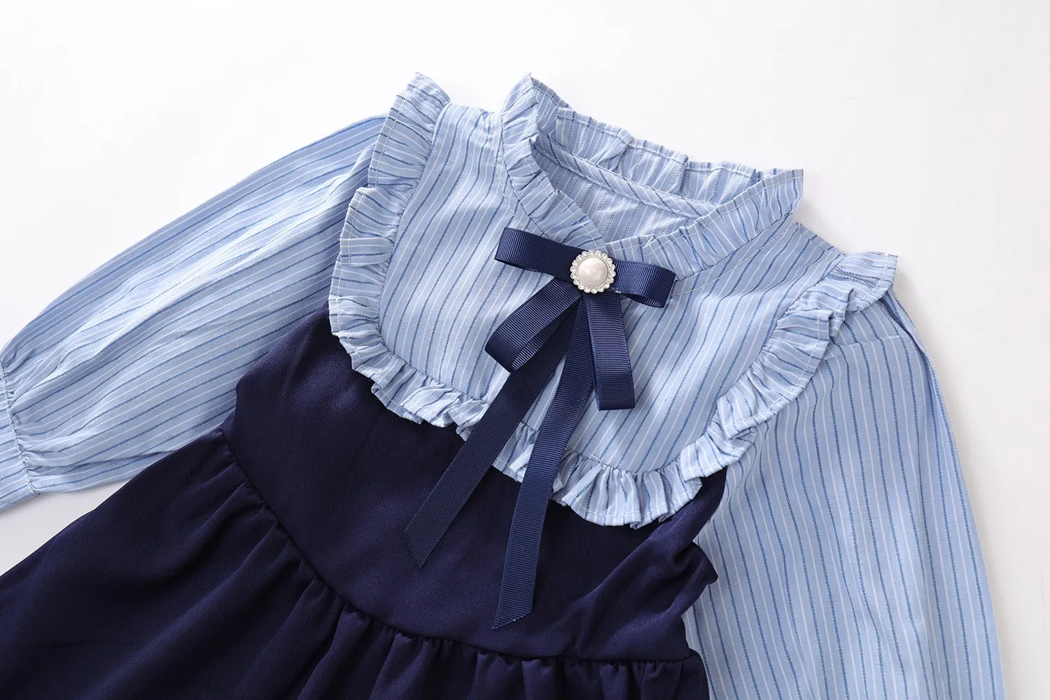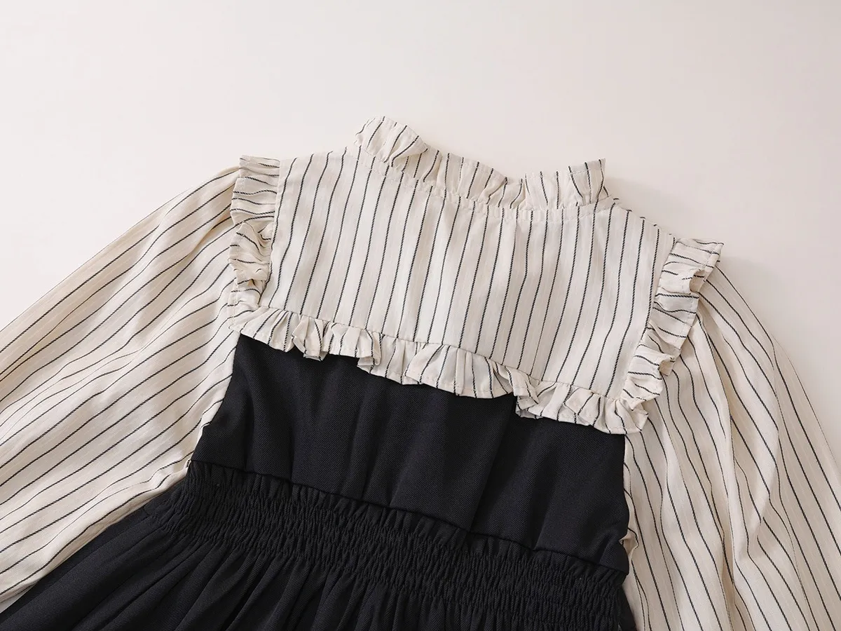 The versatility of the Fake Two-piece Korean Striped Contrast Color Long Sleeve Skirt makes it ideal for various occasions. Whether it's for a day of school, a weekend outing, or a family gathering, this outfit will ensure your little one stays fashionable and comfortable. It's a stylish choice that can easily be dressed up or down with the right accessories.
