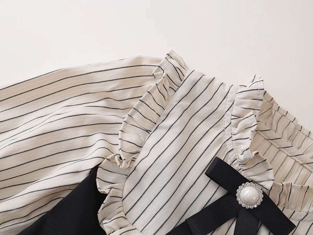 If your child loves to stay ahead of the curve when it comes to fashion, the Fake Two-piece Korean Striped Contrast Color Long Sleeve Skirt is a must-have addition to their wardrobe. Inspired by Korean fashion trends, this outfit is designed to be both chic and comfortable, making it the perfect choice for girls who want to show off their sense of style without compromising on comfort.