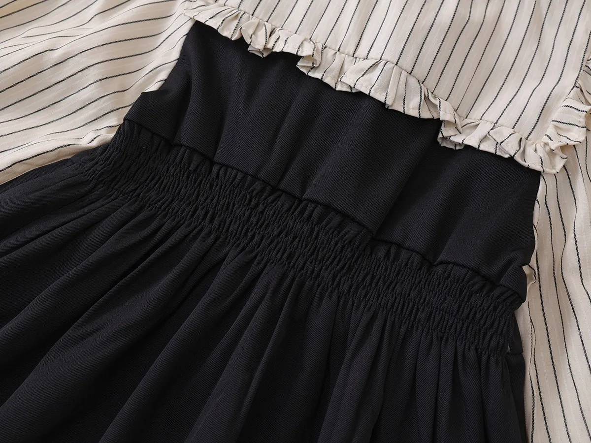 Fake Two-piece Korean Striped Contrast Color Long Sleeve Skirt: Stylish, Modern, and Full of Personality