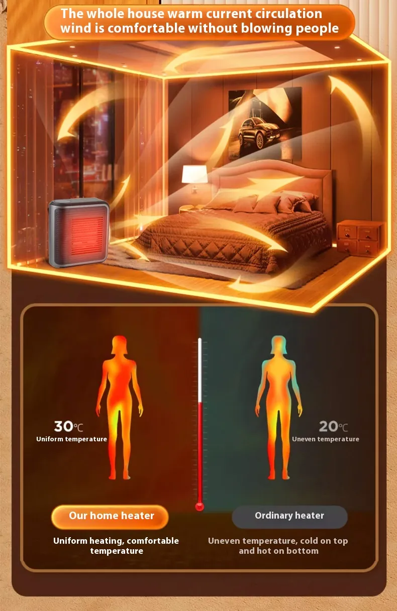 Compared to whole-house heating systems, fan heaters are a cost-effective alternative for localized heating. They are perfect for providing warmth in small spaces, and because they only heat the room you're in, you save on energy bills compared to running the central heating system.