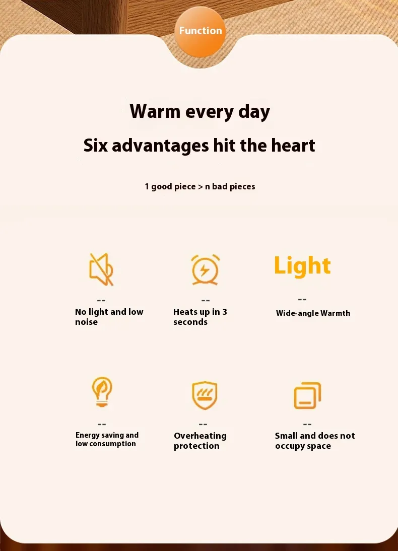 - Whisper-Quiet Function: Provides heat without disruptive noise.