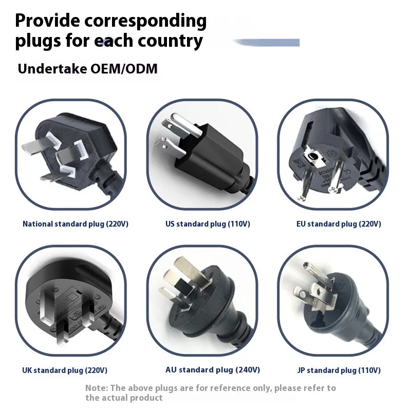 Specifications: European plug, American Standard plug, Japanese standard plug, British regulatory plug, Australian standard plug