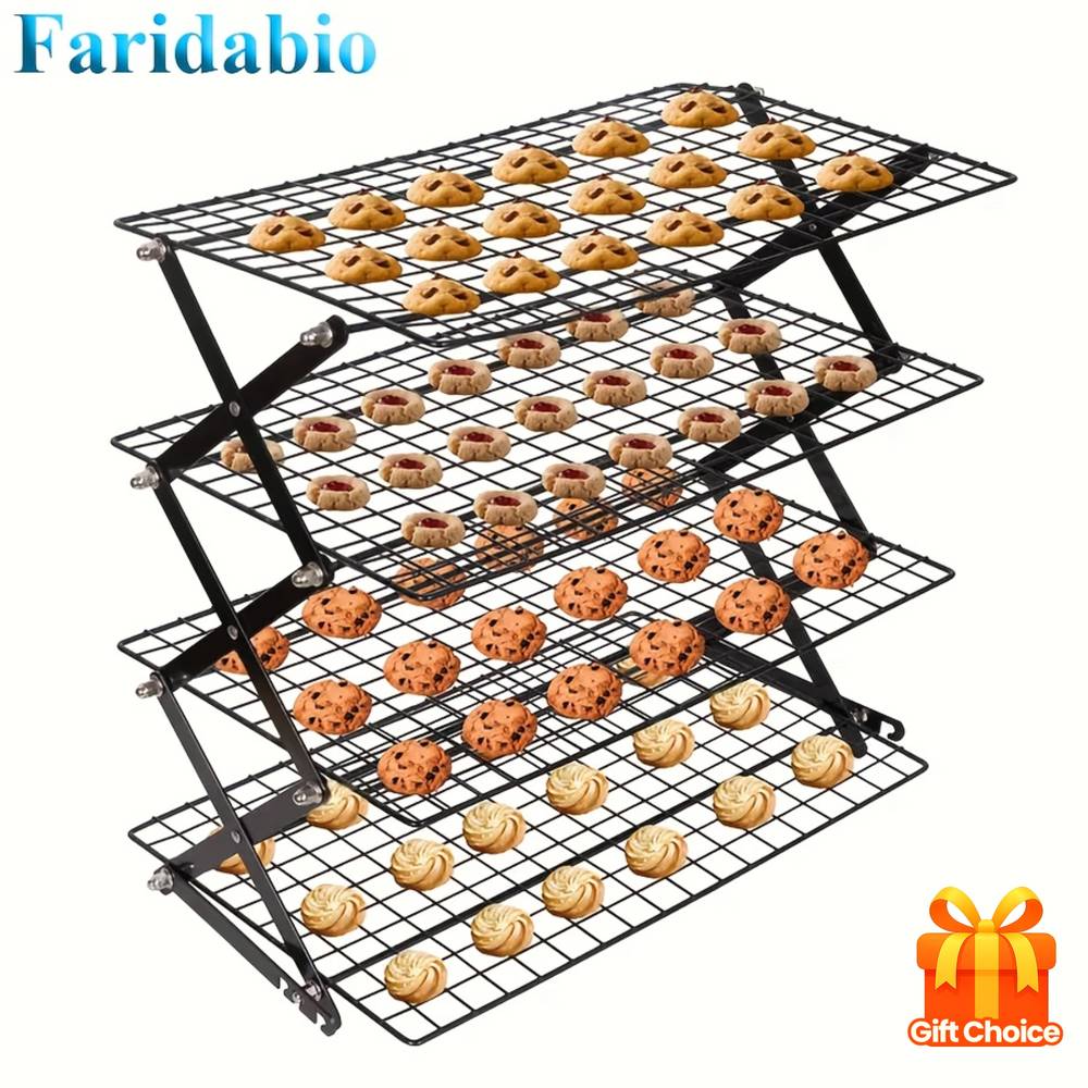 FARIDABIO 3/4 Layer Stackable Folding Cooling Rack – Heavy-Duty Metal Construction for Baking & Outdoor Use