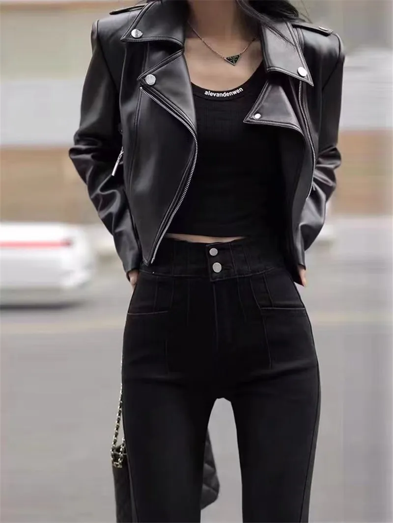 Why Choose the Fashion Black Jacket with Lapel, High Waist, and Zipper Detail?
