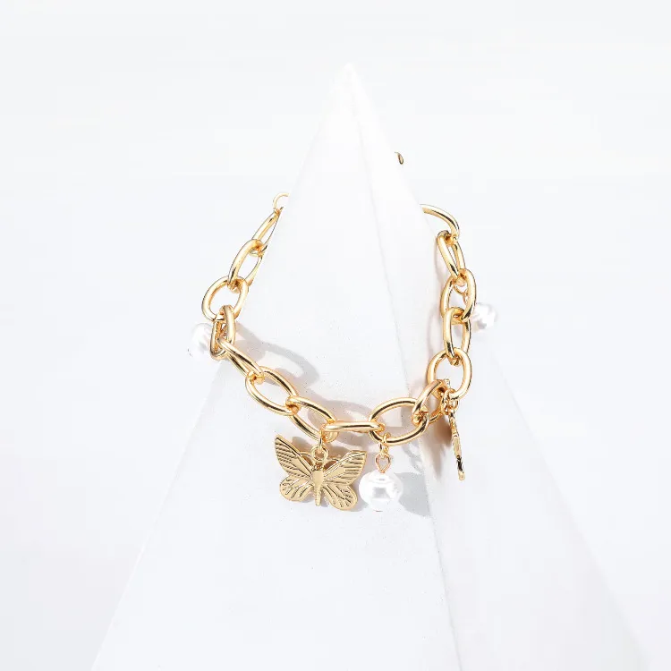 Fashion Butterfly Pearl Pendant Chain Bracelet
