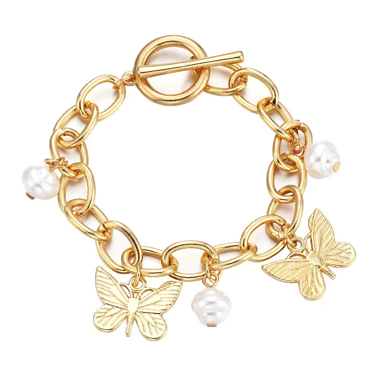 Fashion Butterfly Pearl Pendant Chain Bracelet