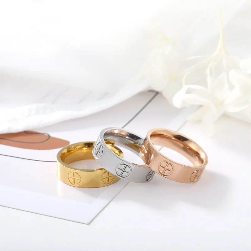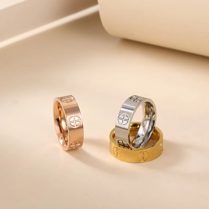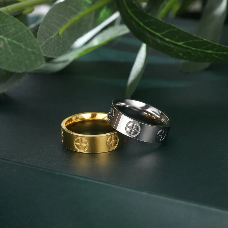 Fashion Classic Cross Stainless Steel Rings - Gold Color Luxury Wedding Jewelry