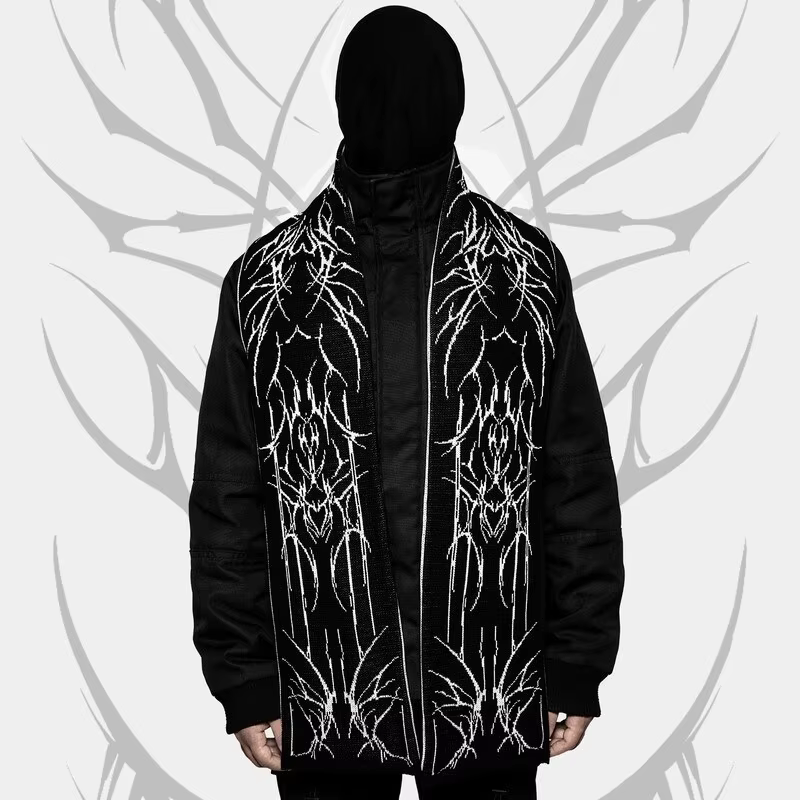 Crafted from soft, high-quality materials, this scarf is not only stylish but also provides warmth and comfort during colder months. The striped design and bold aesthetic make it a versatile accessory for casual outings or dressing up for special occasions. Whether you're embracing the Gothic trend or looking for a standout winter accessory, this scarf offers both functionality and fashion.