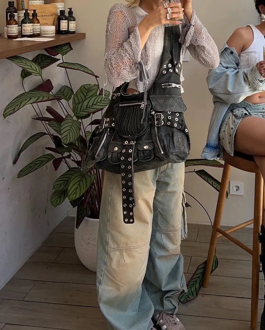 The standout feature of this bag is its wide, knotted shoulder strap. Not only does it provide an edgy, fashionable look, but it also ensures comfort during long hours of wear.