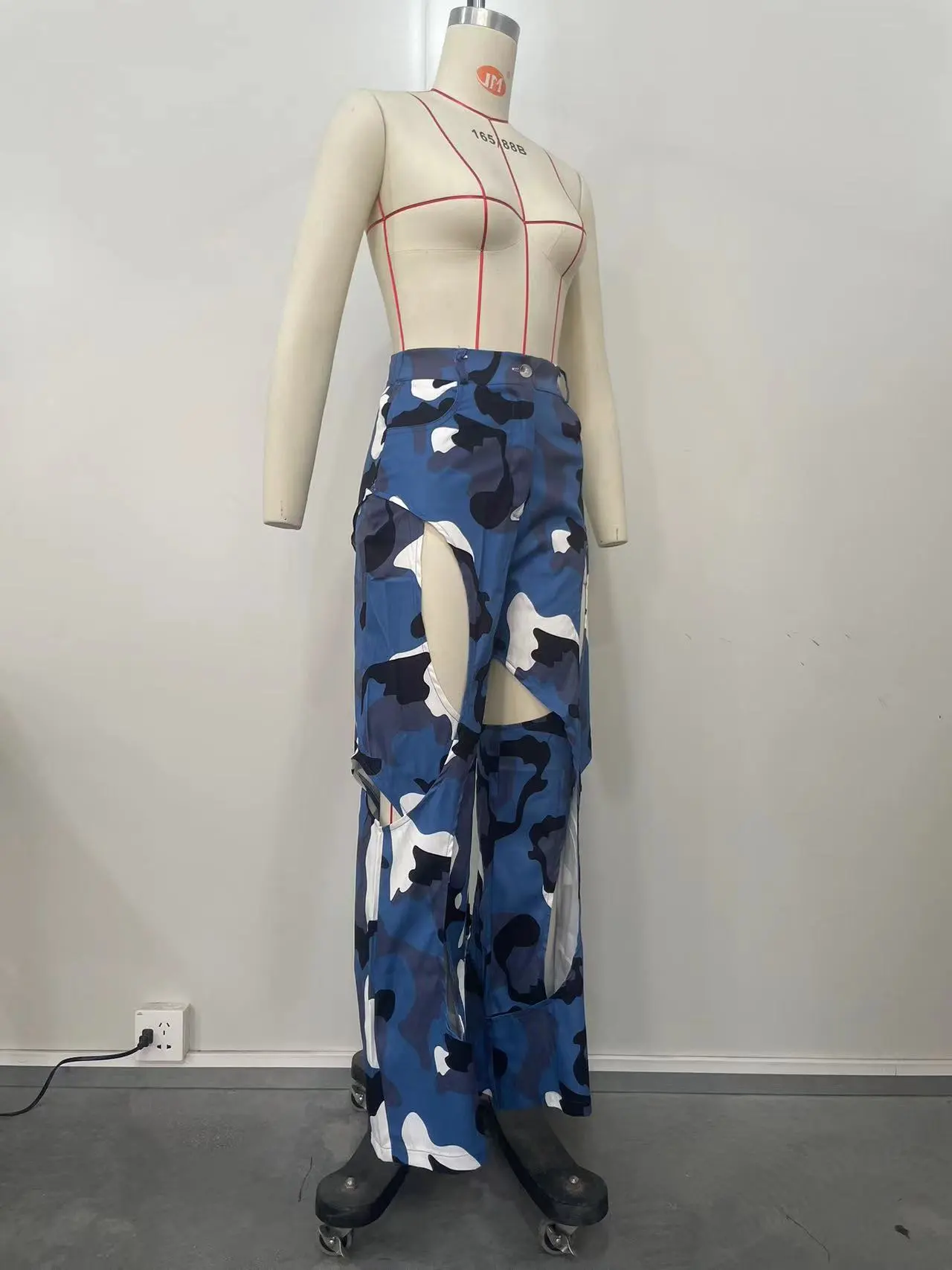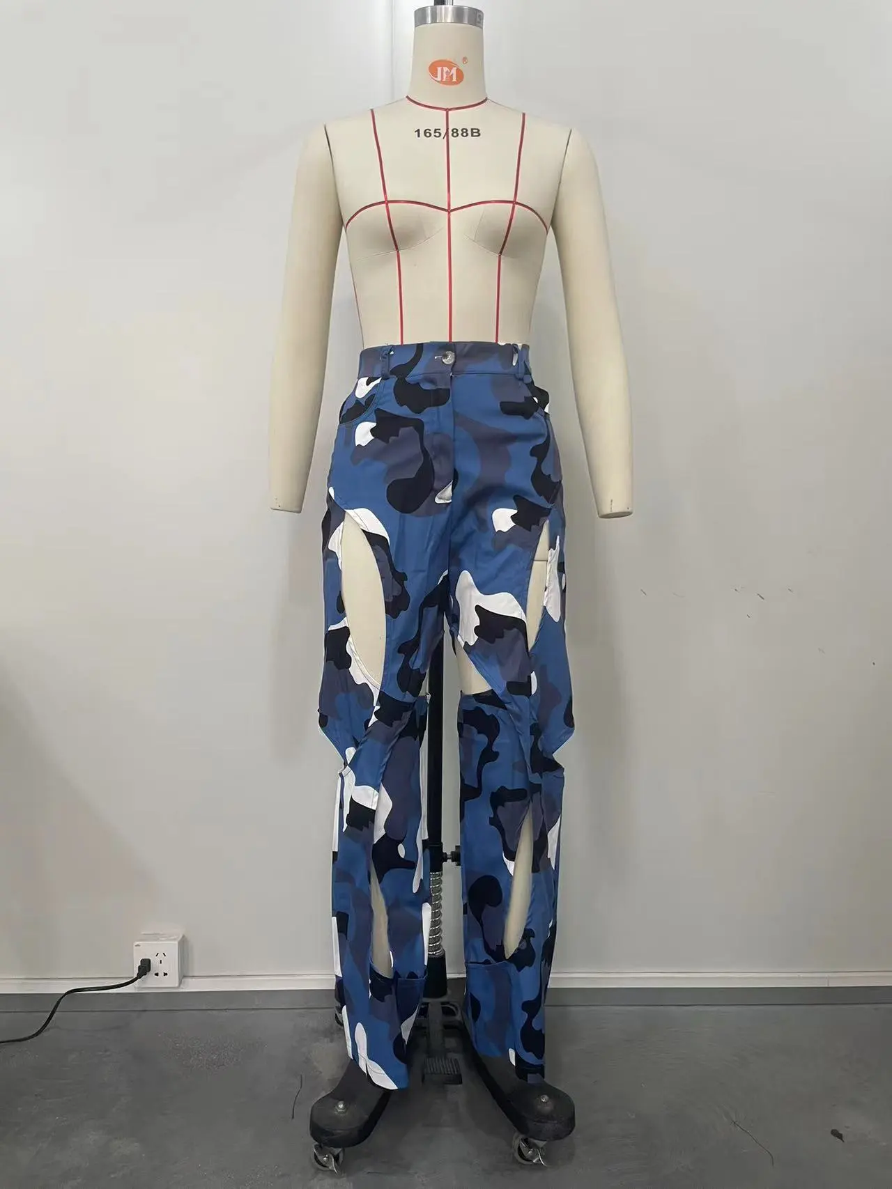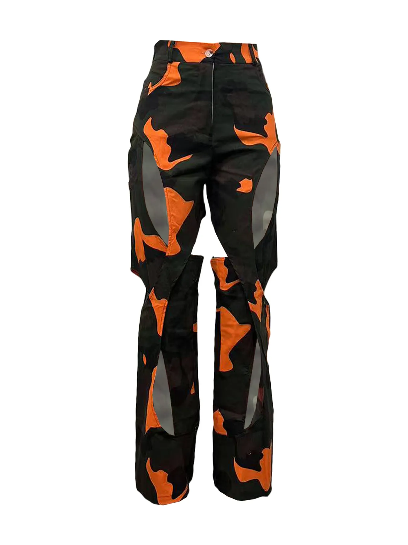 Fashion Digital HD Printing Hole Cross Straight-leg Overalls
