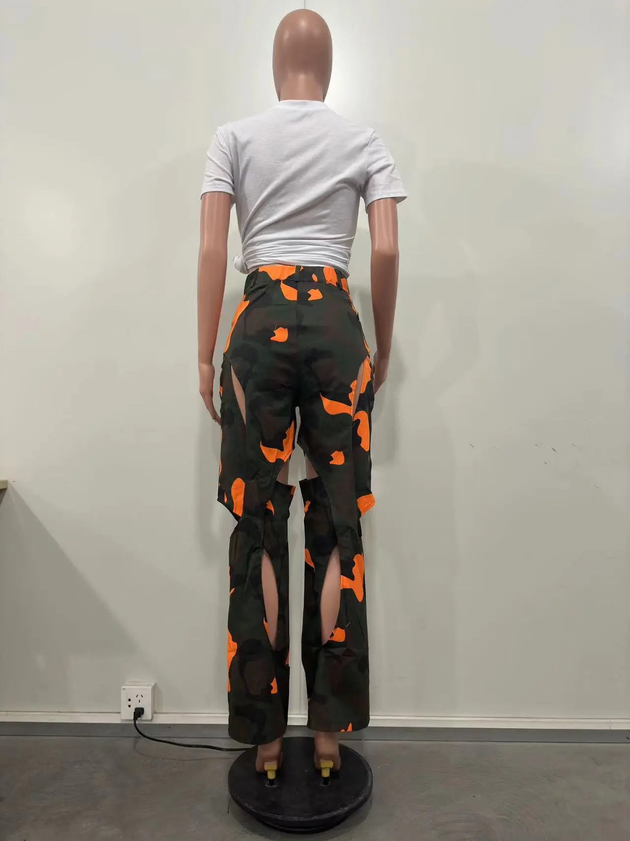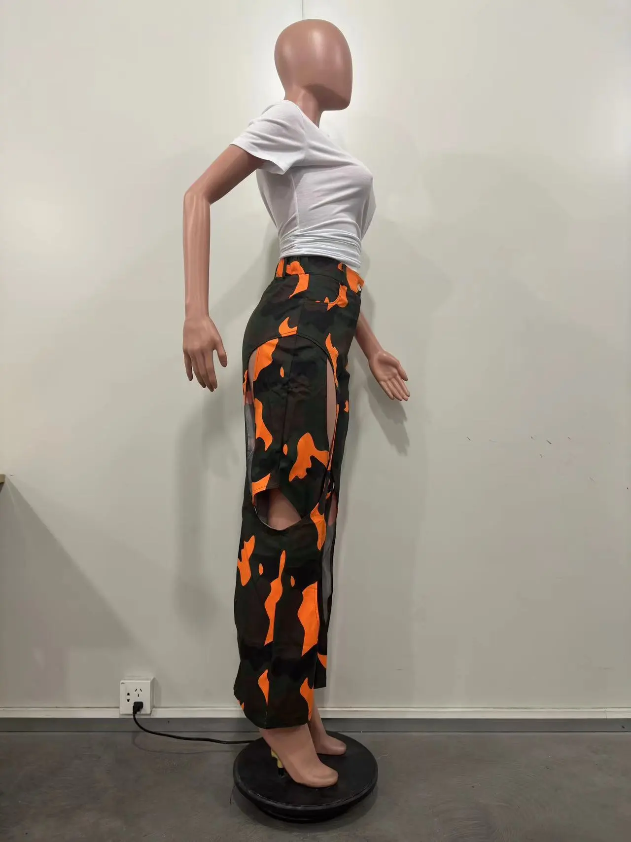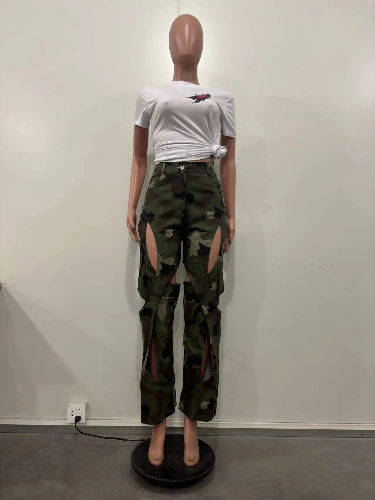 Fashion Digital HD Printing Hole Cross Straight-leg Overalls