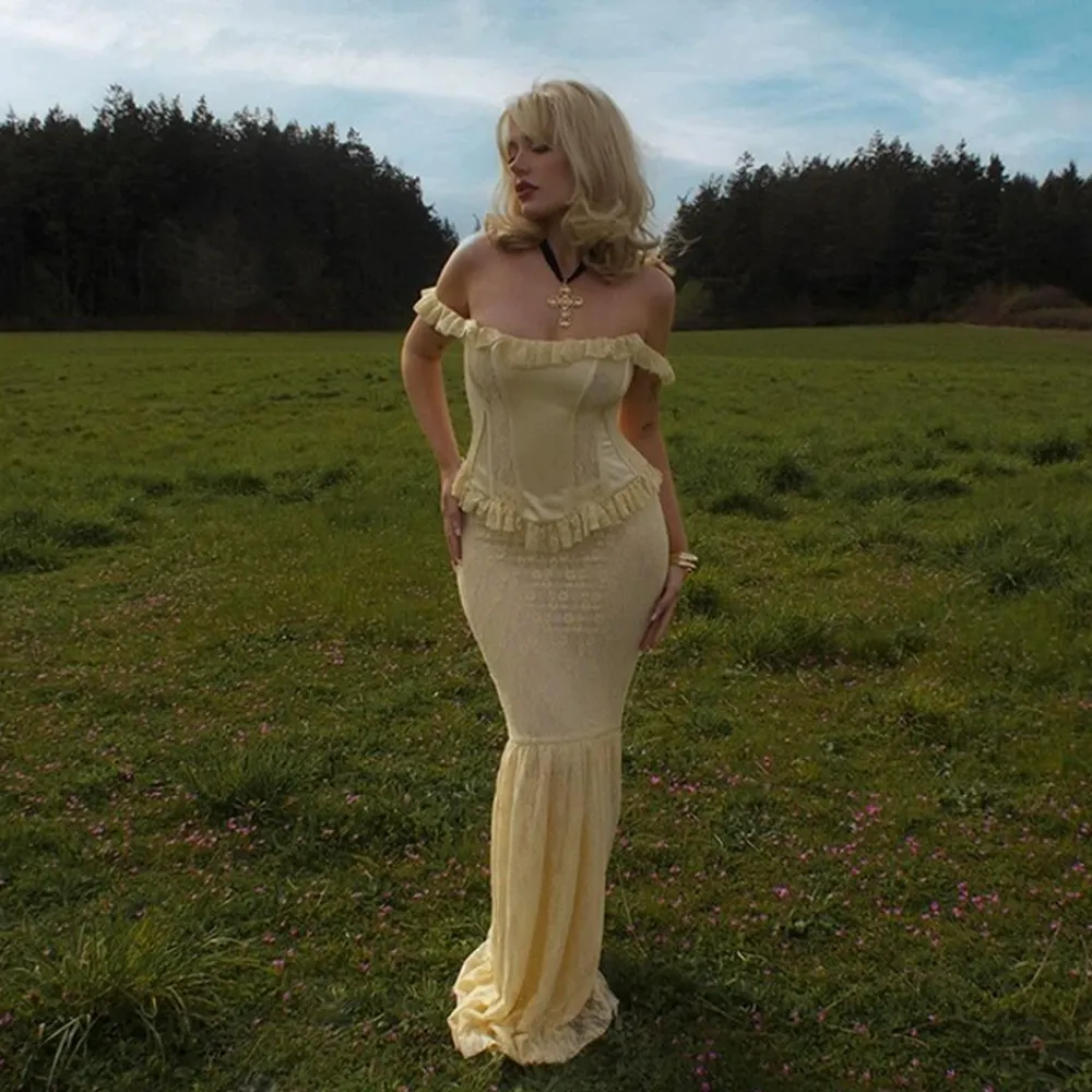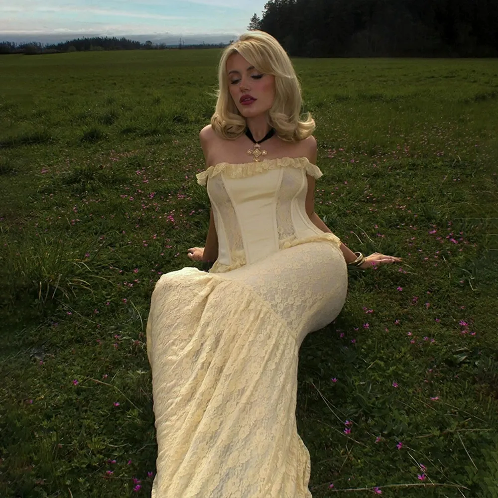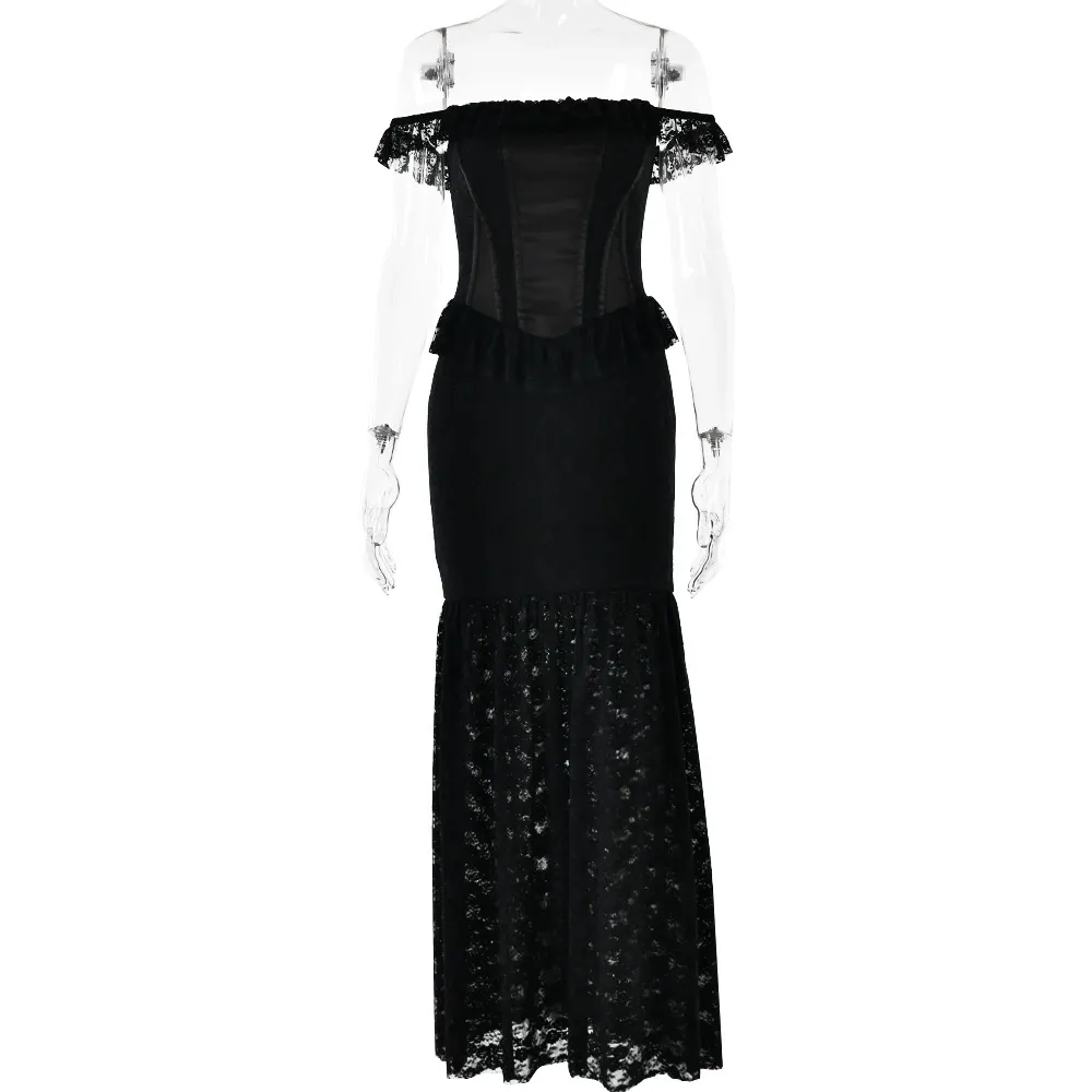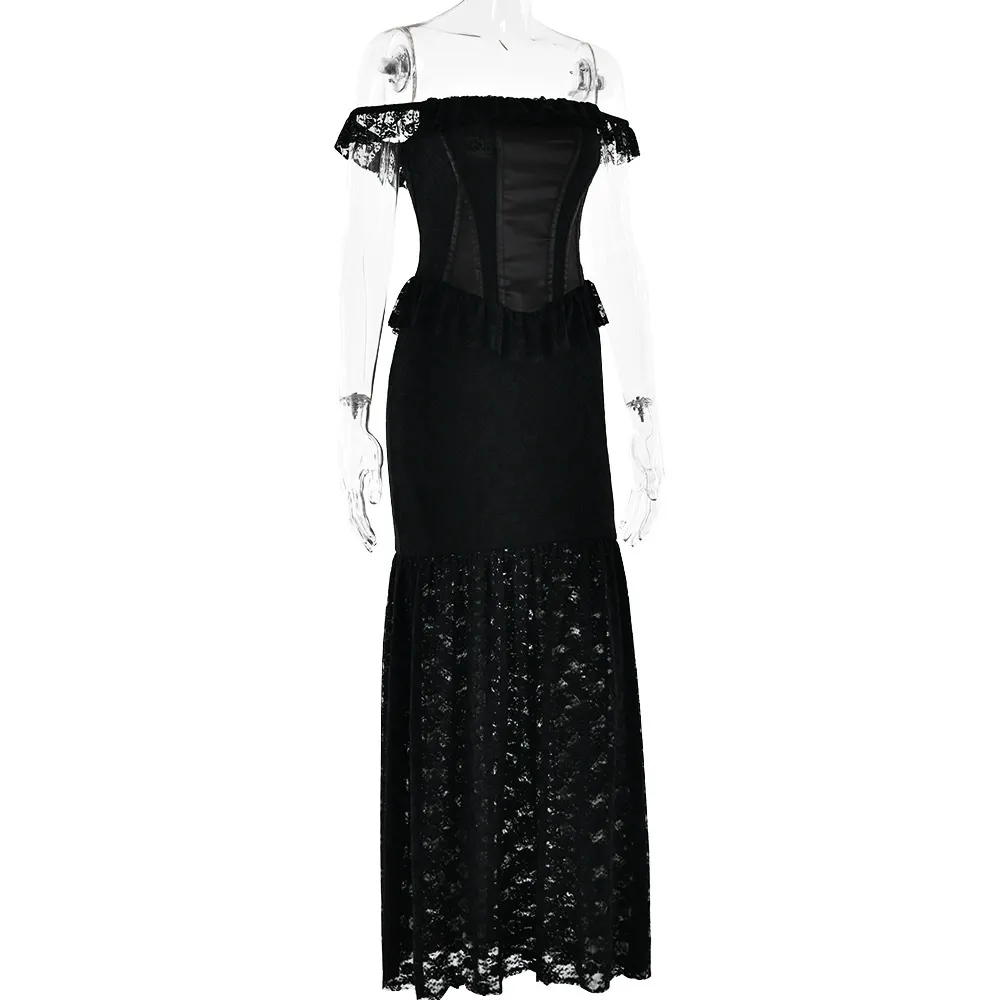 Fashion Dress Lace Stitching Off-neck Backless Dress