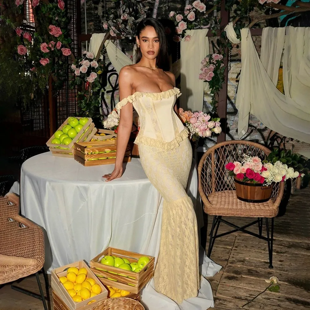 upscale event or a glamorous party, it ensures that all eyes will be on you. The lace stitching adds texture and depth, while the backless