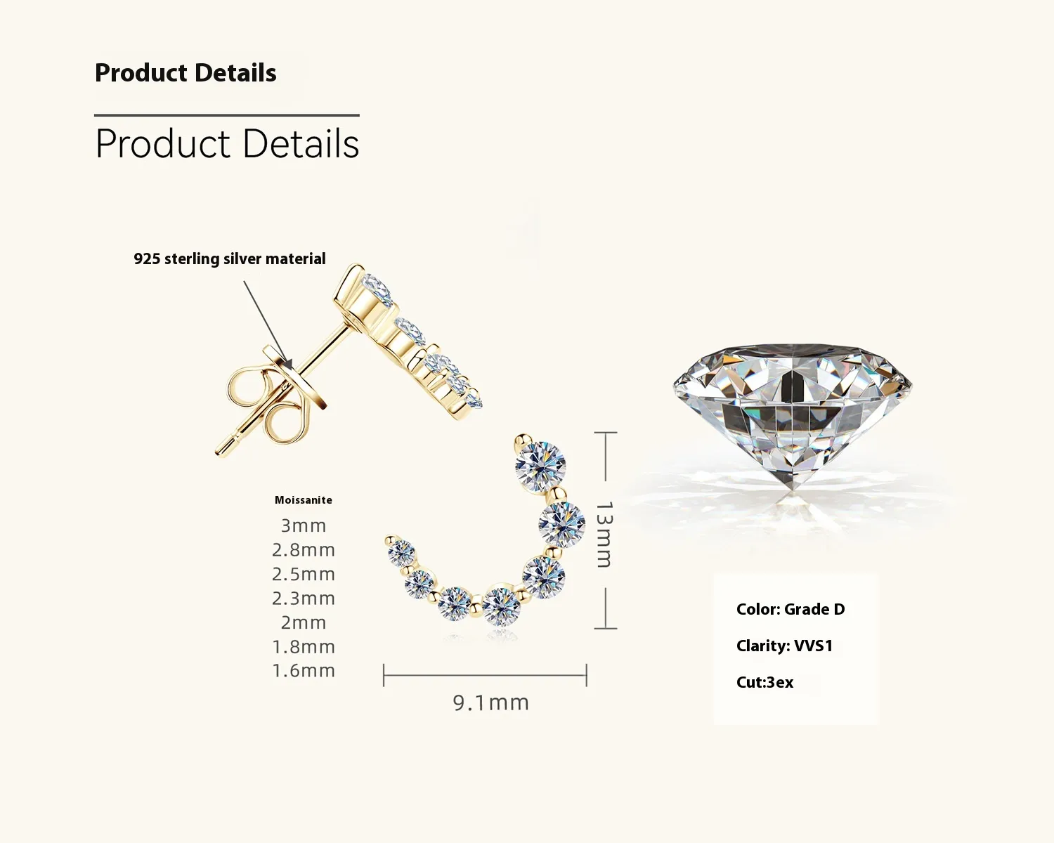 The C-shaped design of the earrings is both modern and classic, wrapping gently around your earlobe for a secure and comfortable fit. The sleek, curved shape adds a touch of elegance and sophistication to any look, making them ideal for both formal occasions and casual wear.