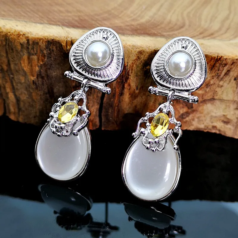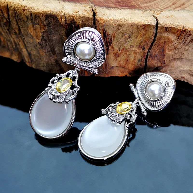 Fashion Exaggerated Moonstone Pearl Earrings