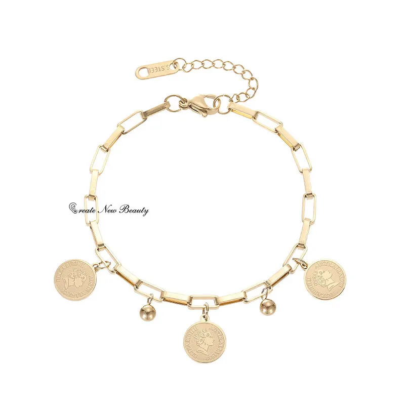 Fashion Gold-Color Bracelet with Round Sign Pendant