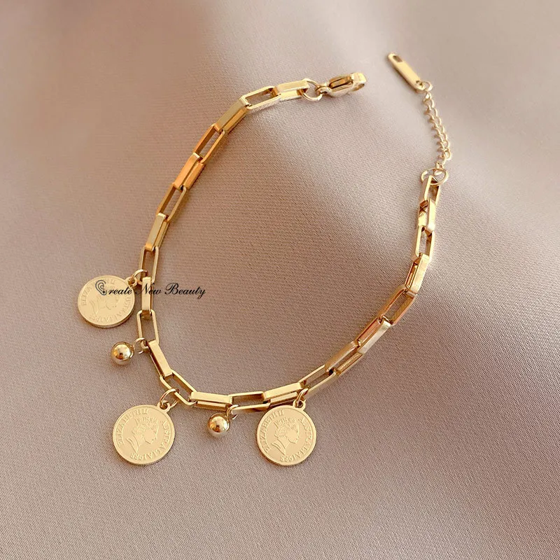 Elevate your accessory game with the Fashion Gold-Color Bracelet, a chic and modern piece designed for women who love bold, stylish jewelry. Featuring a wide cross chain and a stainless steel round sign pendant, this bracelet seamlessly blends hip-hop-inspired style with elegant simplicity. Its gold-tone finish adds a touch of sophistication, making it the perfect choice for both casual wear and statement-making outfits.