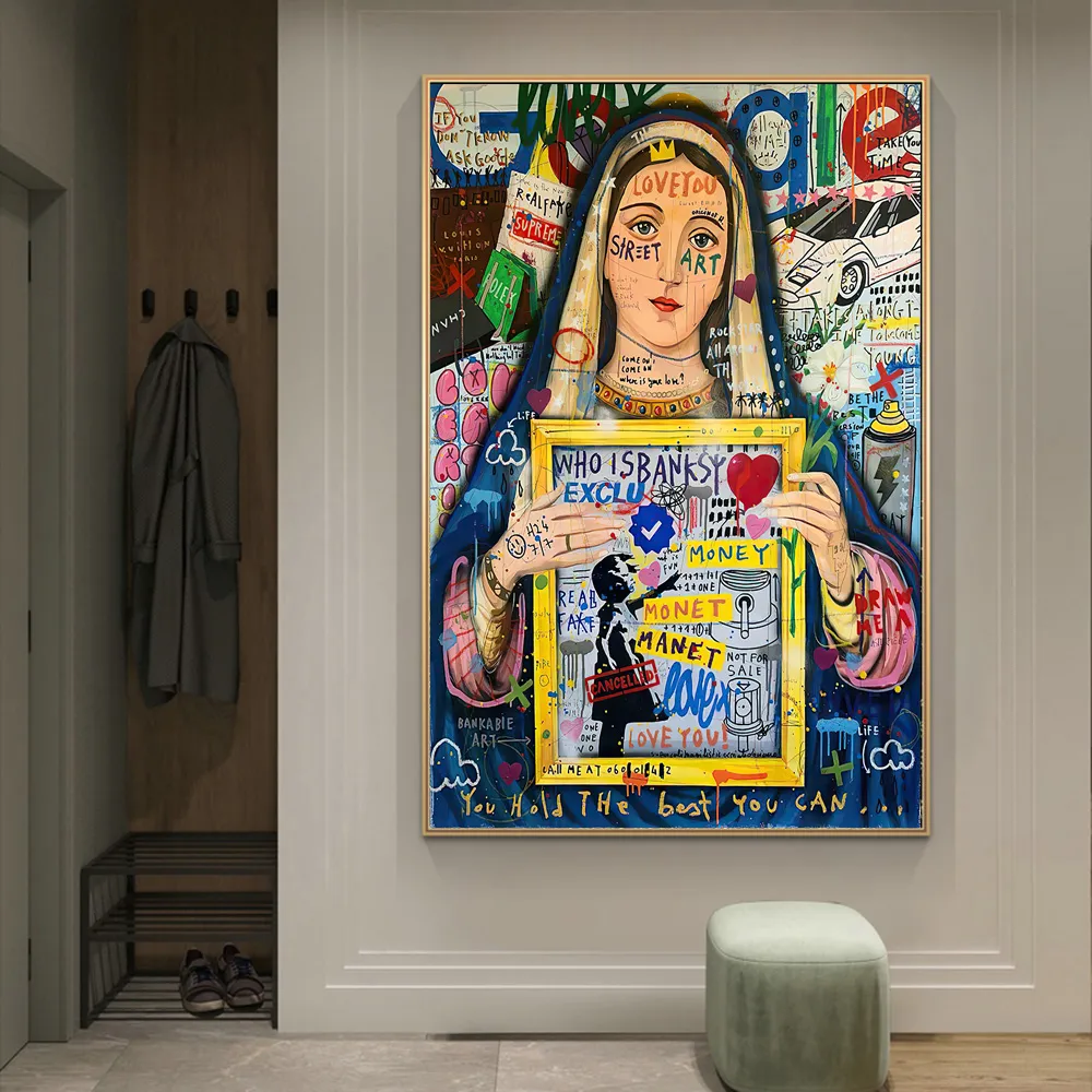 Fashion Graffiti Art Poster Girl Hunting Balloons Street Art Canvas Painting