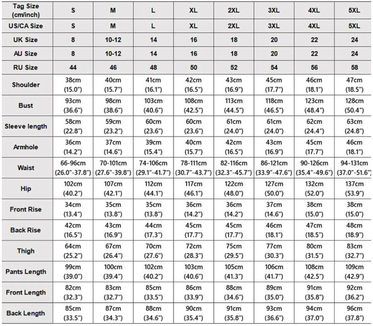 Size: S,M,L,XL,2XL,3XL,4XL,5XL
