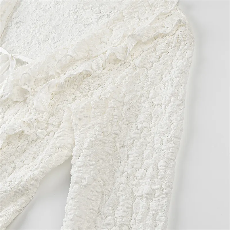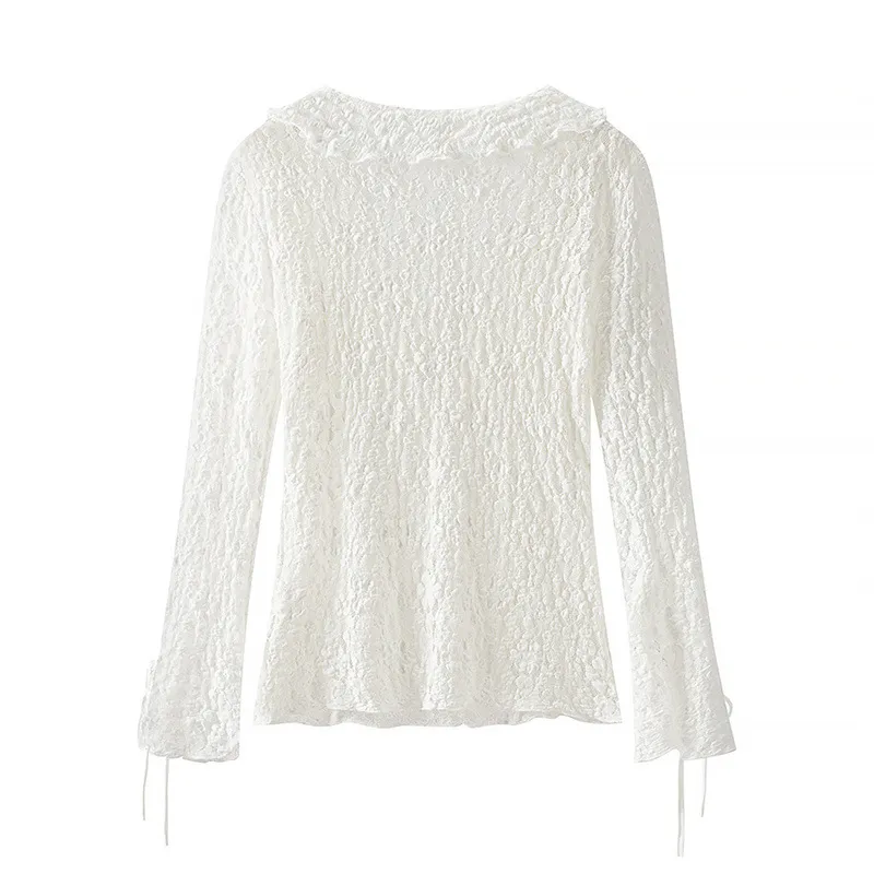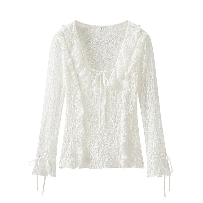 Fashion Long Sleeve Slim Lace Laminated Decoration Top – Elegant, Feminine, and Flattering