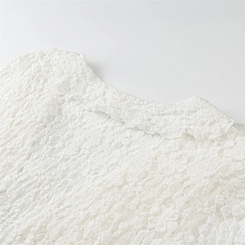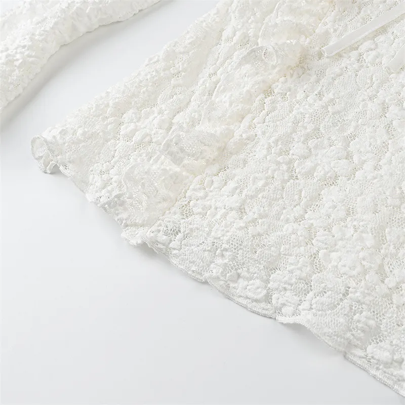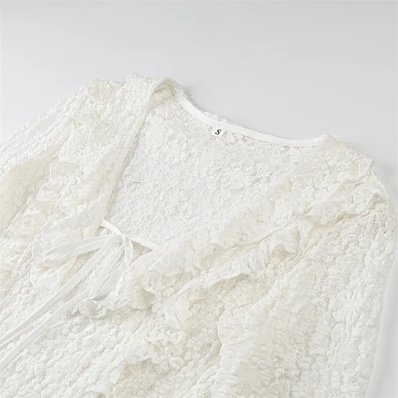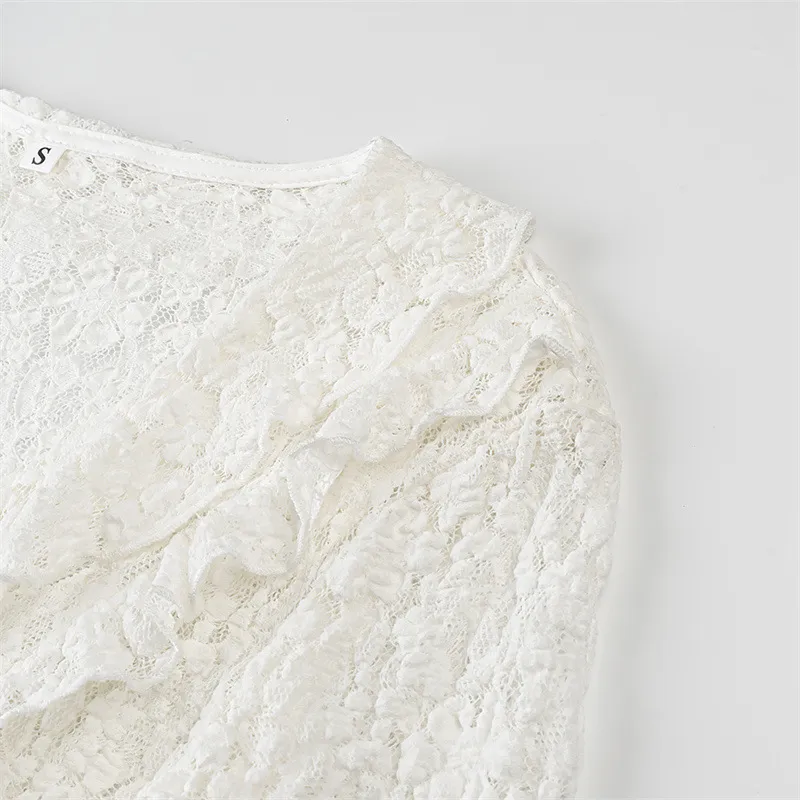 Perfect for women who appreciate timeless fashion with a modern twist, the Fashion Long Sleeve Slim Lace Laminated Decoration Top is a wardrobe essential that transitions seamlessly from day to night.