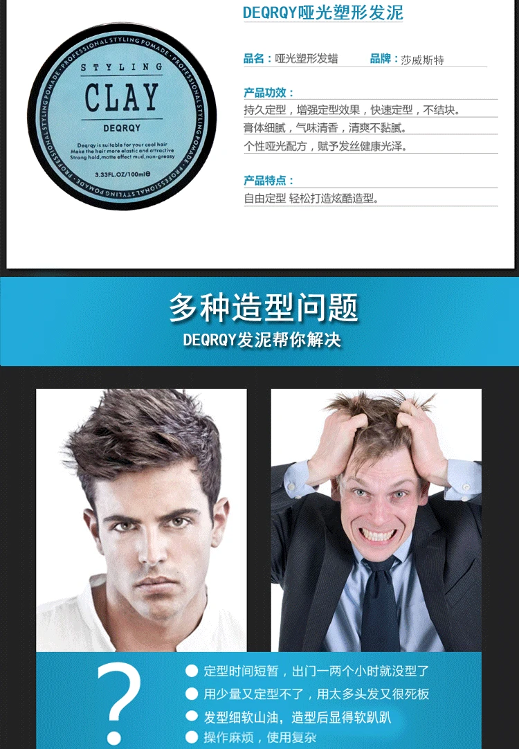 Unlike traditional styling gels that leave your hair looking shiny or greasy, the Fashion Matte Finished Hair Styling Clay provides a low shine, giving your hair a fresh, natural appearance. Whether you're going for a casual, laid-back look or a sharp, polished style, this clay gives you the flexibility to achieve a range of hairstyles with the perfect matte finish.