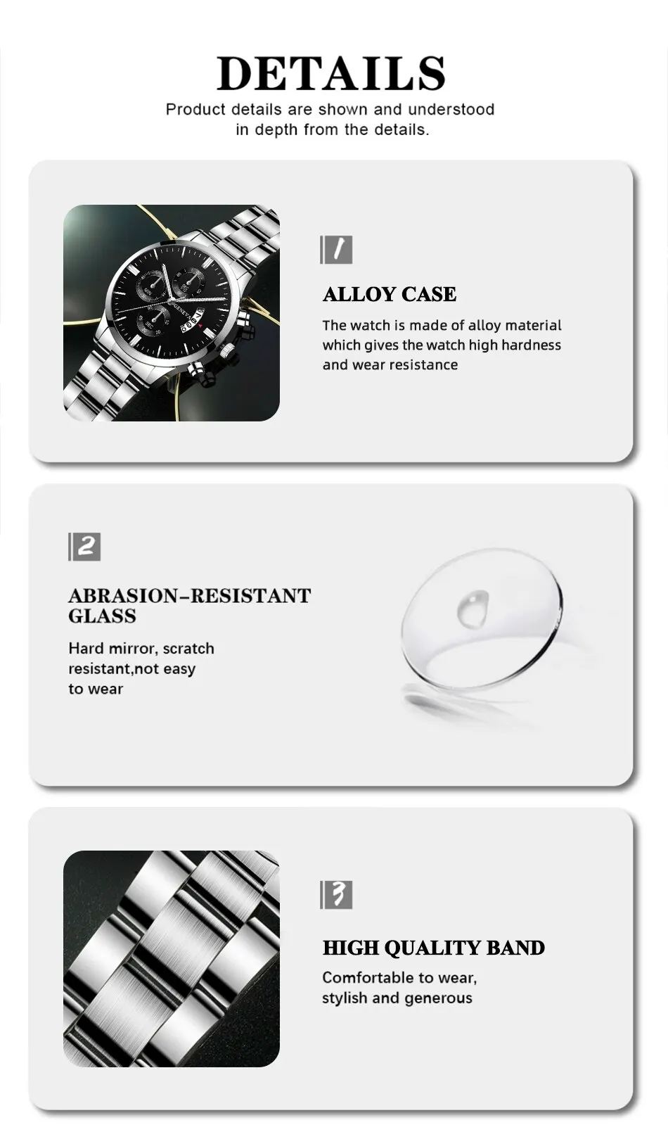 Key Features of the Men’s Stainless Steel Quartz Watch