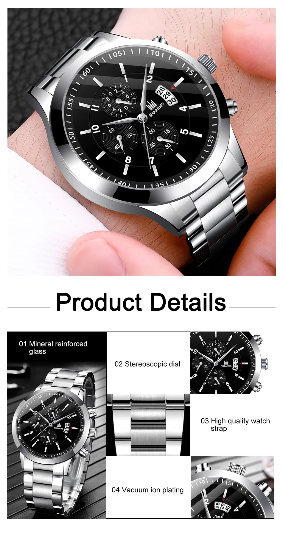 The Fashion Men's Stainless Steel Luxury Quartz Wristwatch is a timeless piece that combines modern design, precision craftsmanship, and versatility. Designed for the modern man, this wristwatch offers a refined blend of elegance and practicality, making it perfect for both business and casual occasions. Paired with a matching bracelet set, it elevates your style with effortless sophistication.