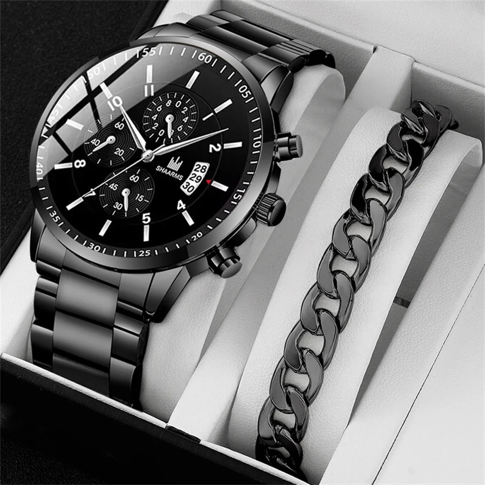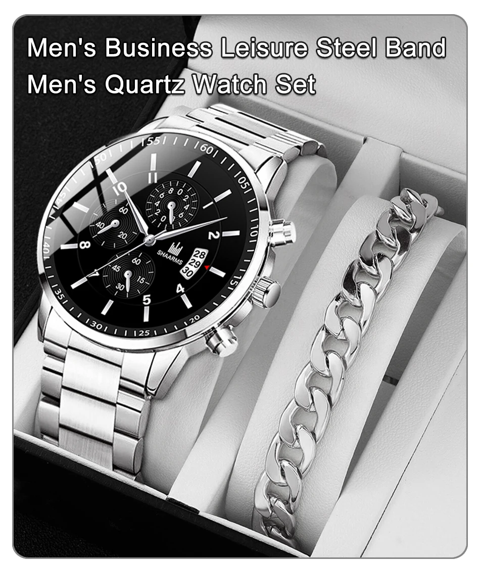 With its luxurious design and matching bracelet set, this watch makes an excellent gift for birthdays, anniversaries, or holidays. Its versatile appeal ensures it suits men of all ages.