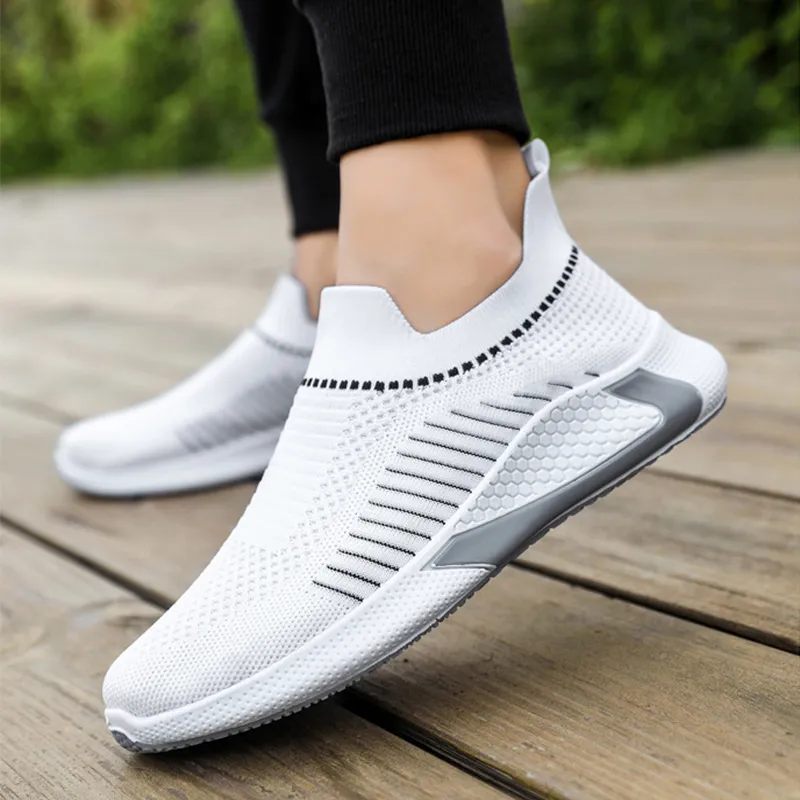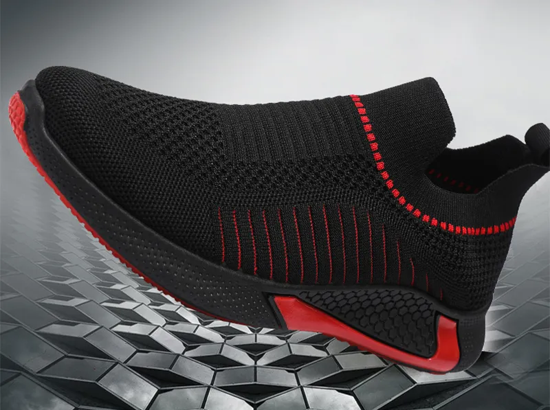 Fashion Mesh Sock Shoes With Striped Design Men Outdoor Breathable Slip-on Sneakers Csuale Lightweight Running Sports Shoes