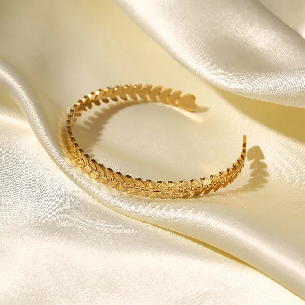 The carefully crafted design features lifelike leaf motifs that capture the essence of natural beauty while offering a stylish and sophisticated look. With its versatility and timeless appeal, this bracelet is a must-have addition to any jewelry collection.