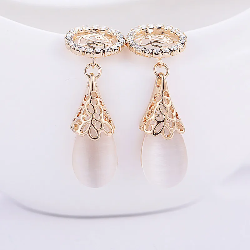 Fashion Personality Round Rhinestone Rose Earrings