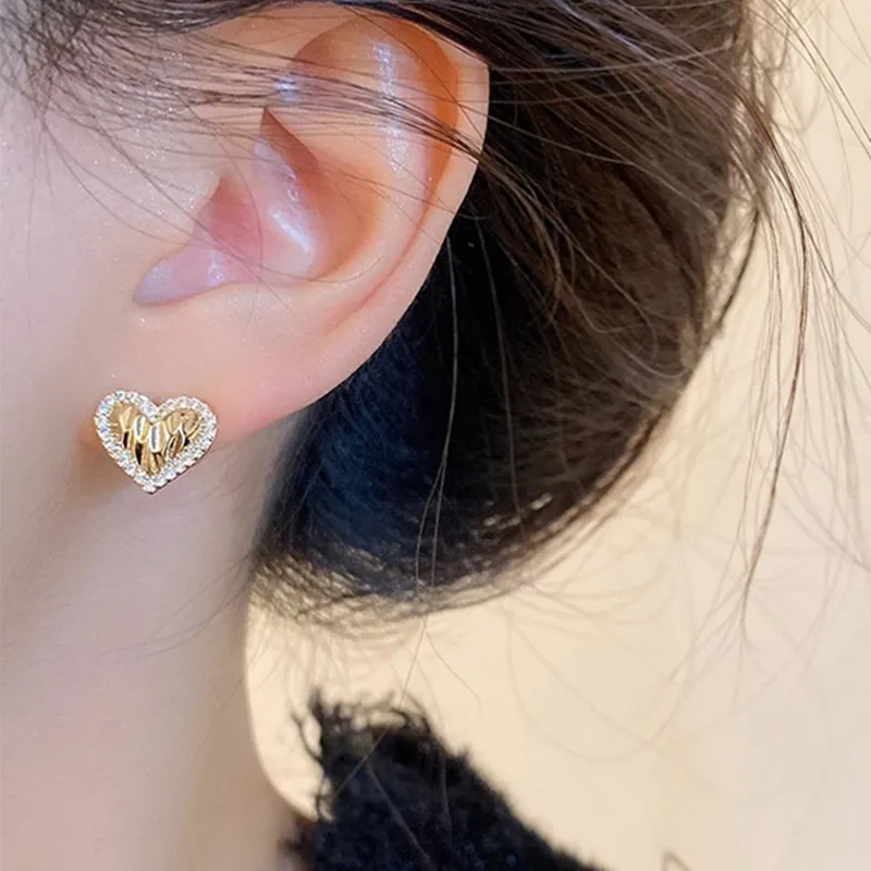 Fashion Pleated Heart-shaped Zircon Silver Pin Earrings Geometric Advanced