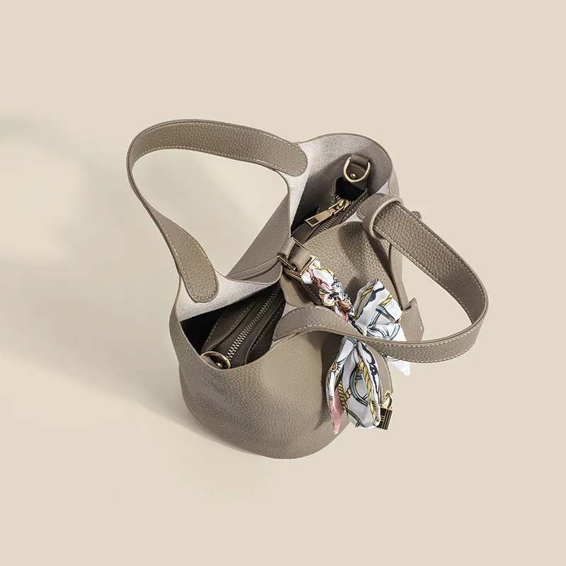 With its large capacity, this bucket bag is perfect for carrying your daily essentials while maintaining a slim profile. The bag is designed to provide enough room for your items without feeling heavy or cumbersome, making it a practical accessory for everyday use.