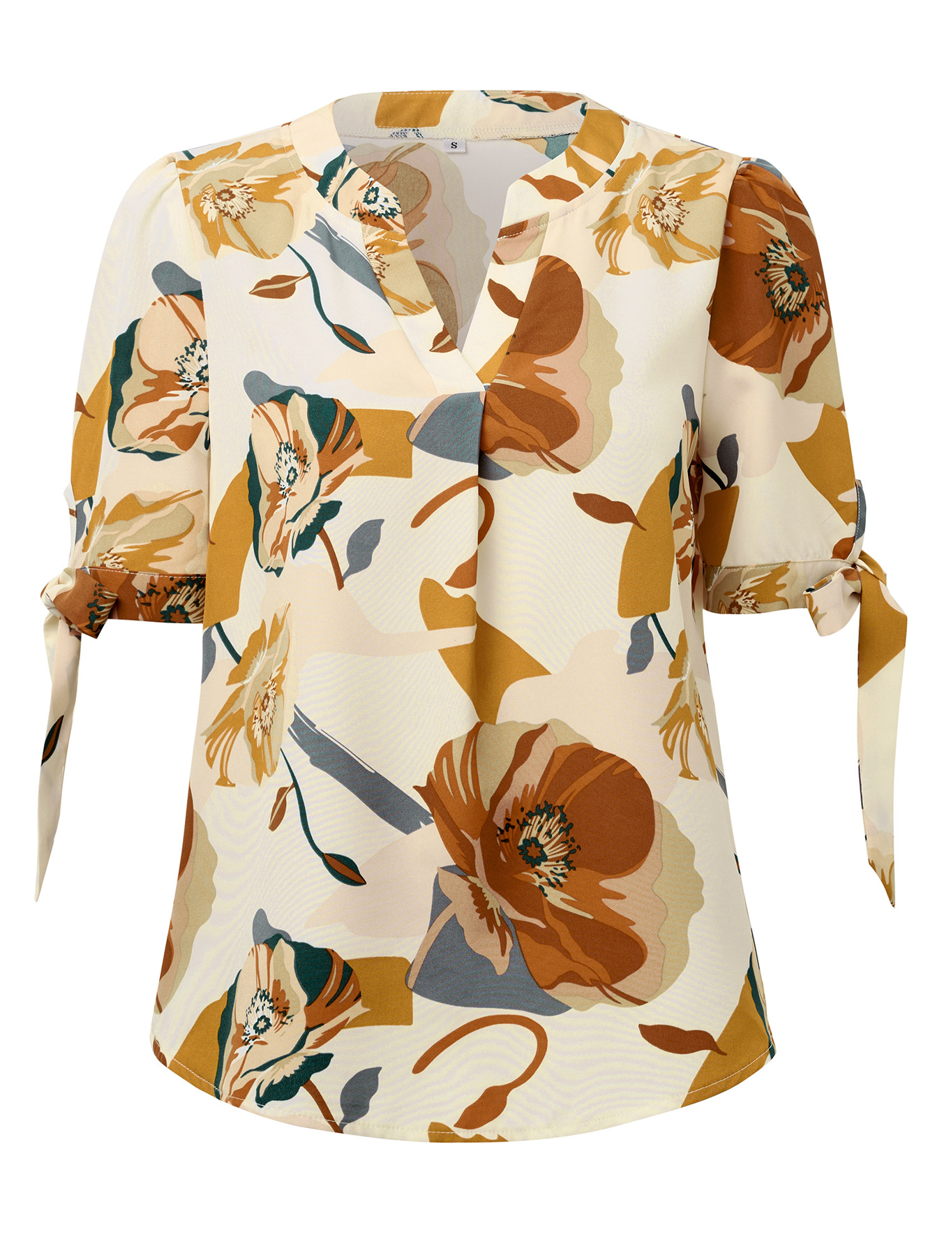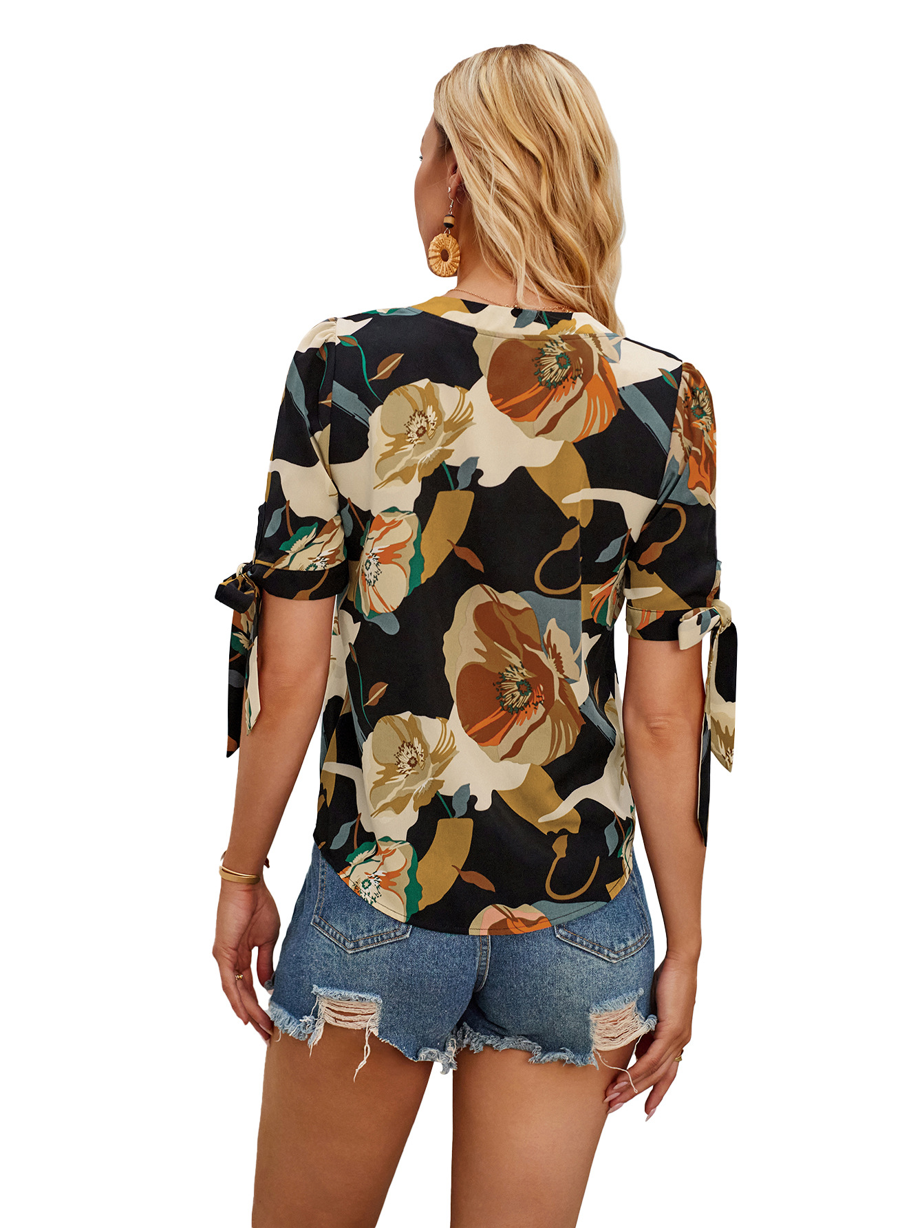 Fashion Printed Casual V-Neck Cuff Bundle Top