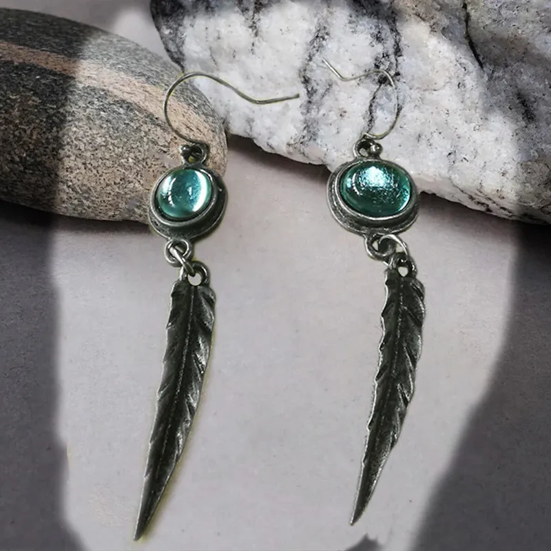 Fashion Simple Opal Feather Pendant Earrings – A Touch of Elegance and Serenity