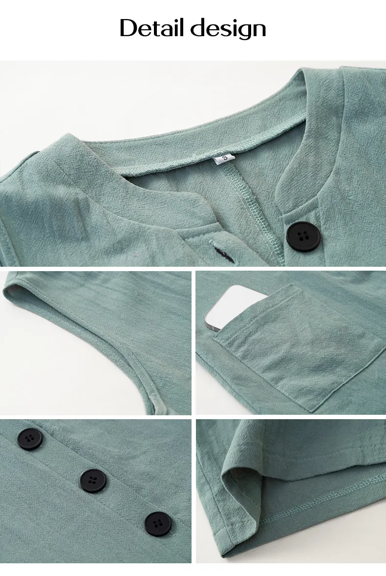 The jumpsuit features a sleeveless design that is ideal for warm weather, offering both breathability and freedom of movement. The button design on the front adds a touch of sophistication and elegance, making it suitable for both casual outings and semi-formal events. The wide leg pants provide a relaxed fit, ensuring comfort throughout the day while still maintaining a polished look.